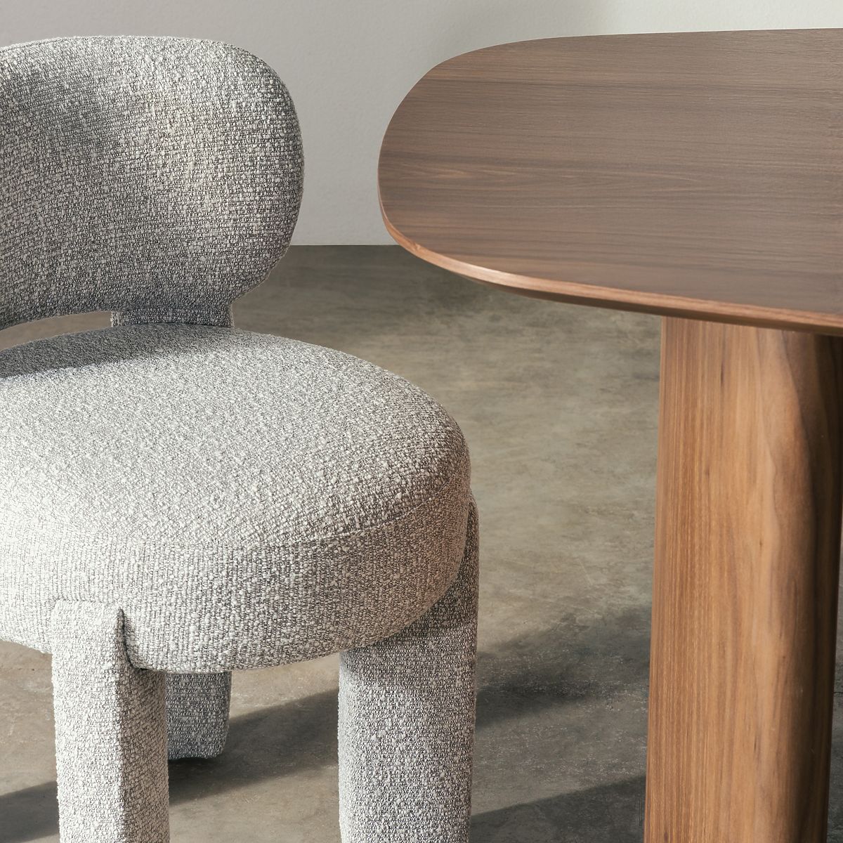 Stolička Falone s poťahom boucle a oblými tvarmi pre moderný interiér. .. viac