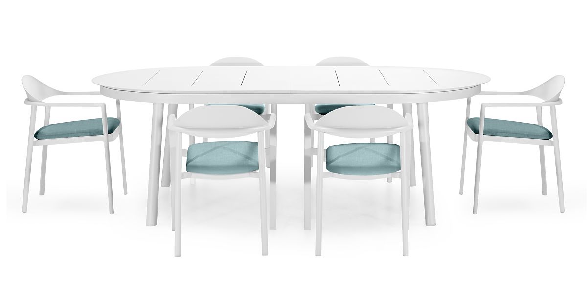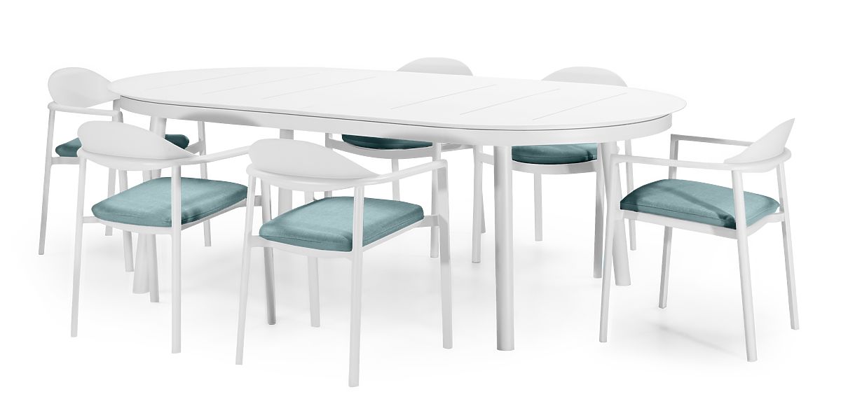 Lukahome.sk » Na záhradu / Záhradné nábytok / Záhradný set Marinelli, rozkladací stôl 230-300 cm + 6 stoličiek, hliník, biela
