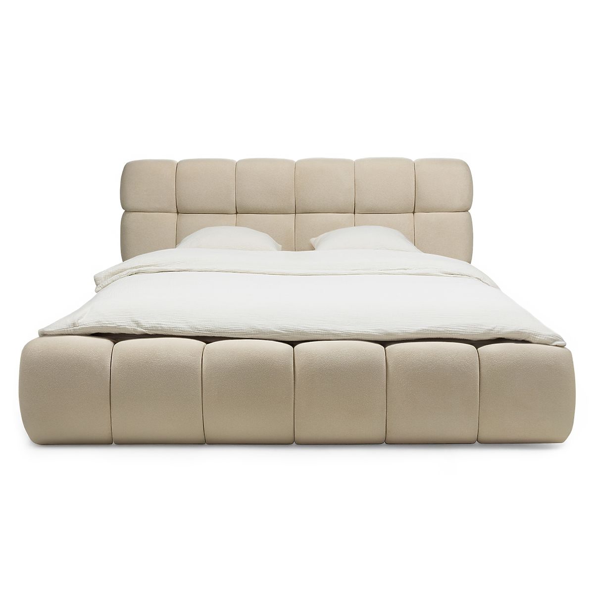 Lukahome.sk » Postele / Manželské postele / Postele 160x200 / Čalúnená posteľ Nexo 160x200 cm, s roštom a úložným priestorom, svetlo béžová, oblých tvarov