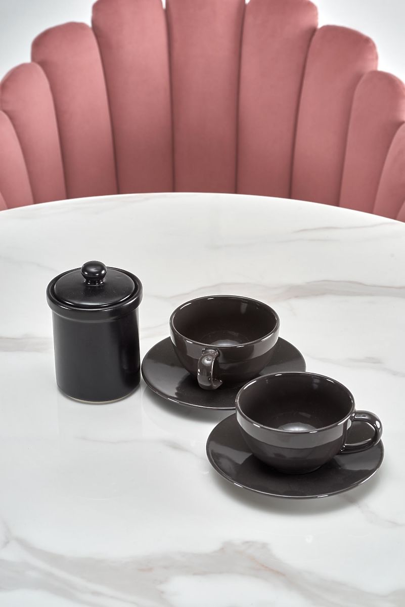 Okrúhly stôl s mramorovou doskou a čiernymi nohami. .. viac