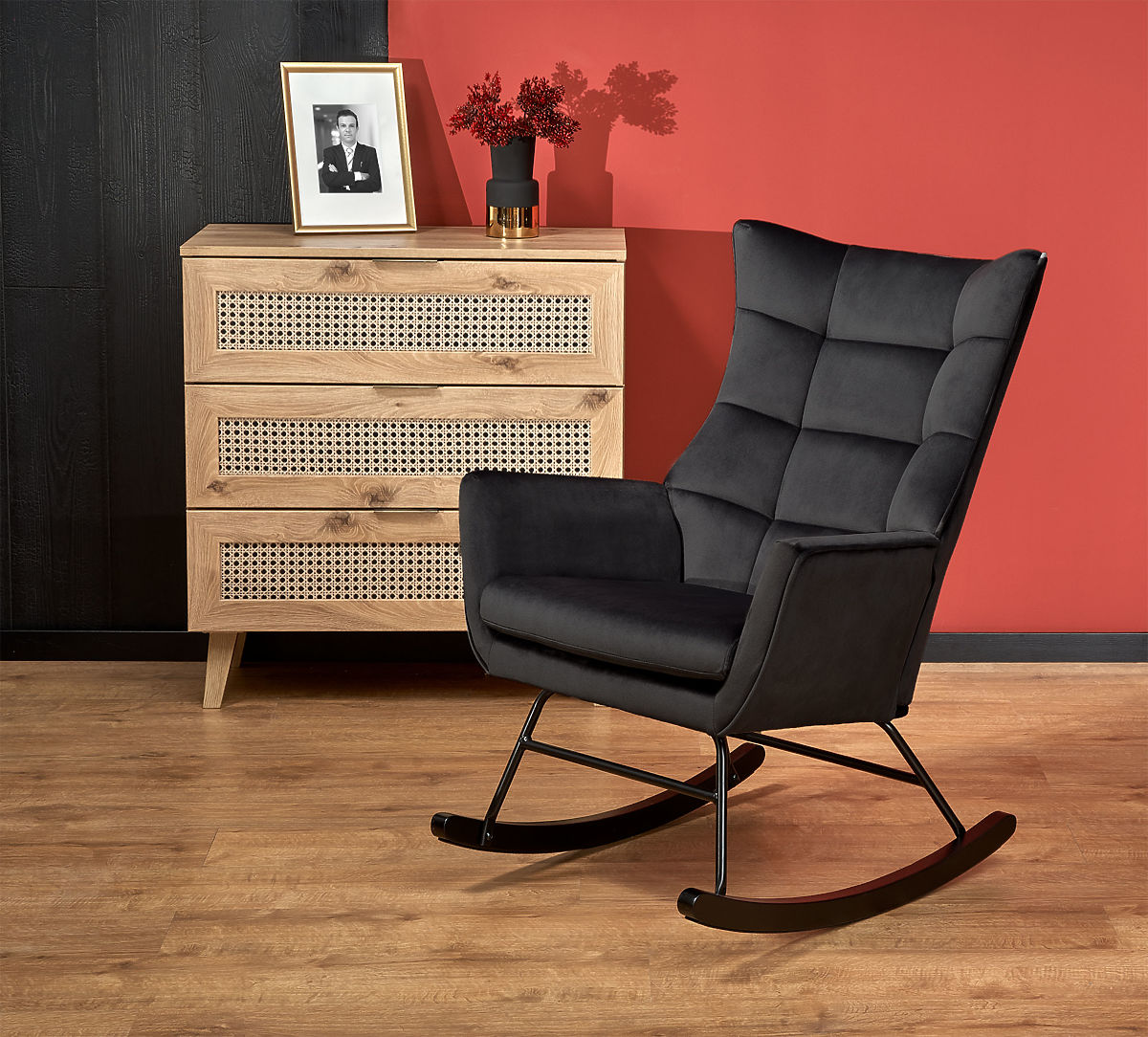 Čierne hojdacie kreslo BAZALTO z masívneho dreva a zamatu. .. viac