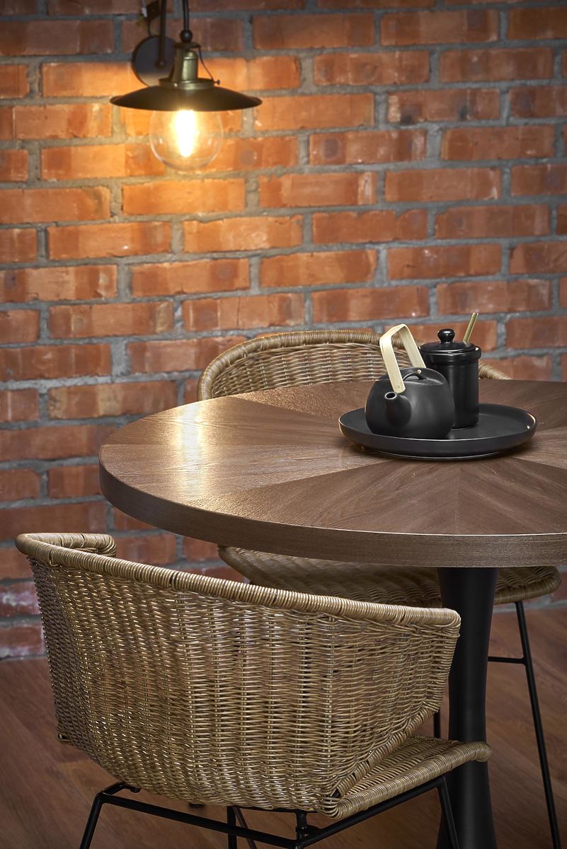 Okrúhly stôl CARMELO s orechovou doskou a čiernymi nohami. .. viac