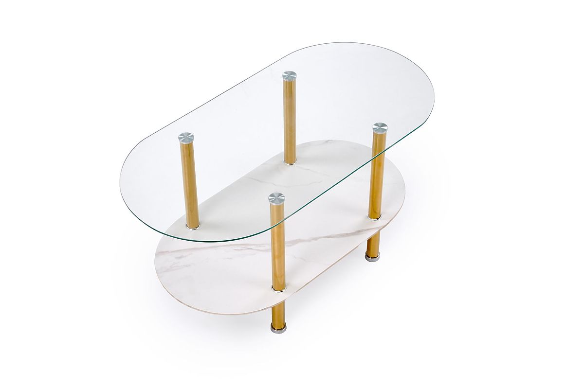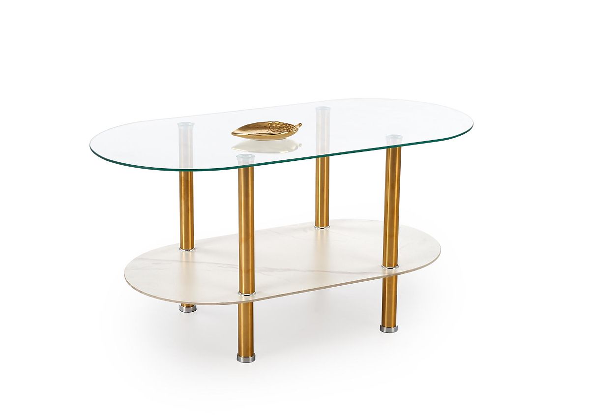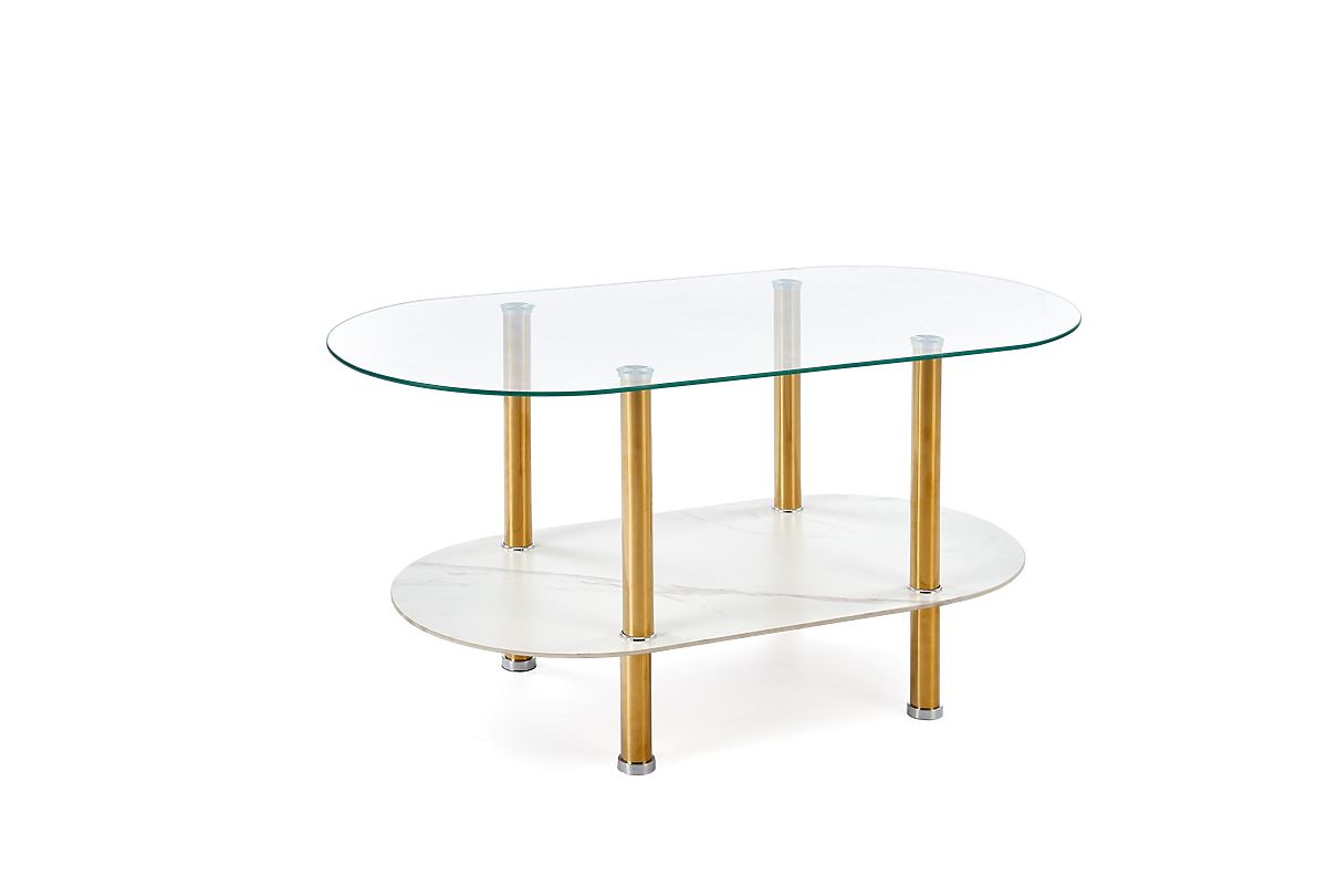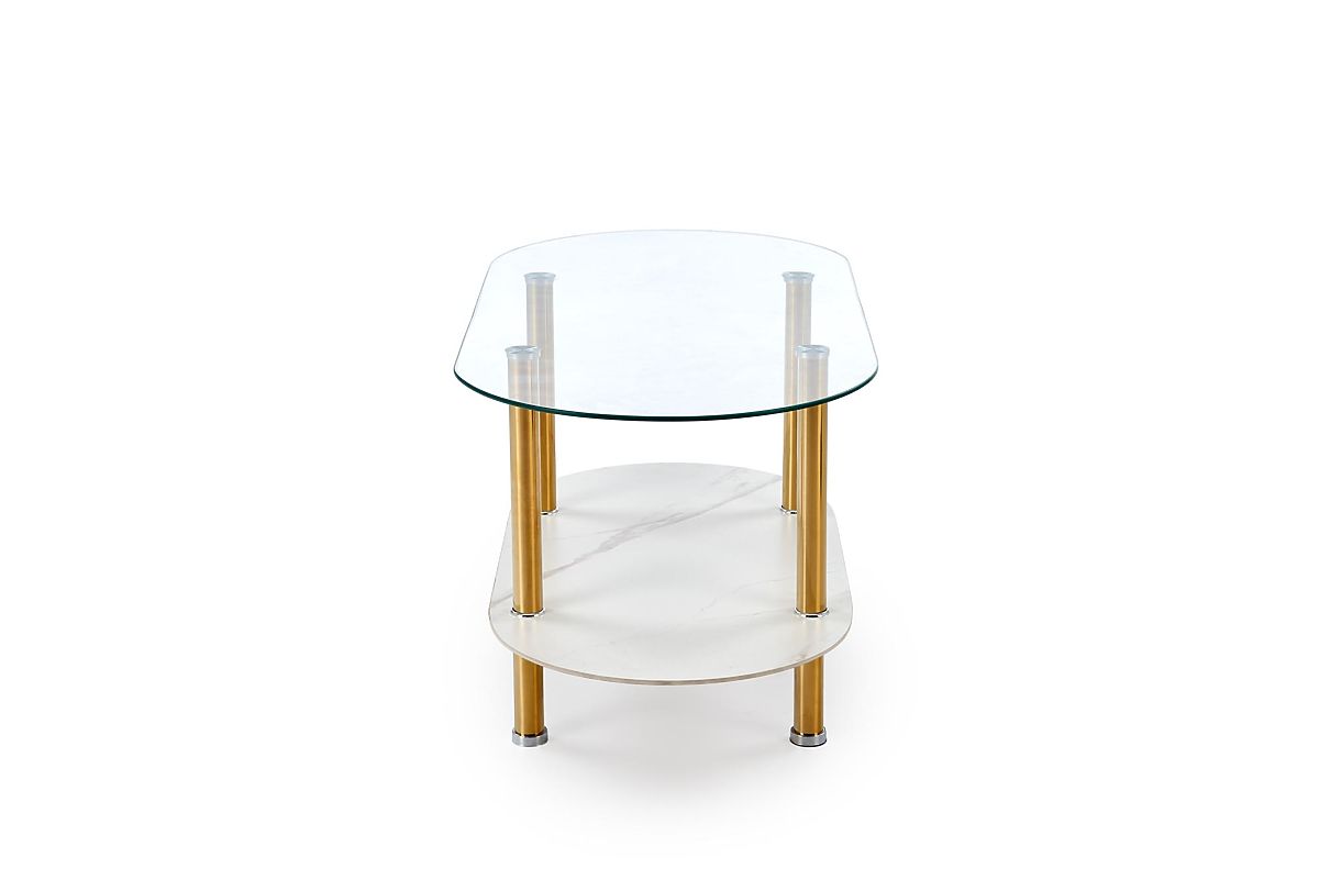 Lukahome.sk » Stoly a stolíky / Konferenčný stolíky / DUCAT konferenčný stolík, biely mramor / transparentný / zlatý (2p=1ks)