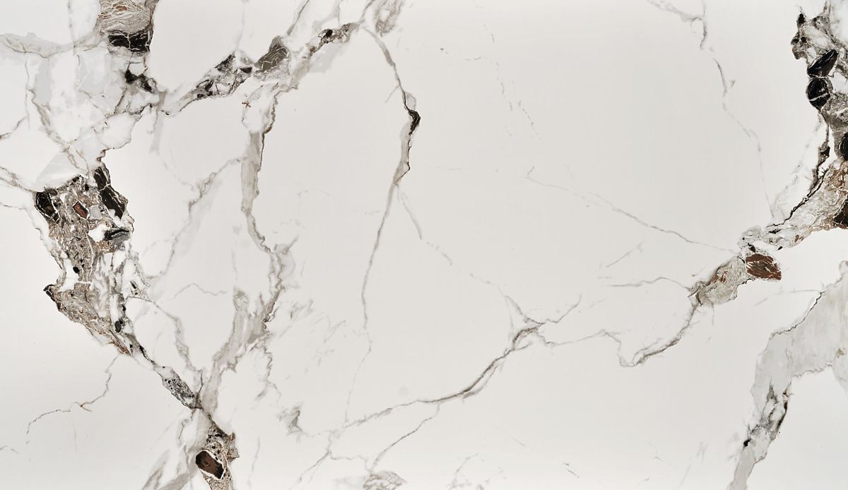 Stôl s bielou mramorovou doskou a čiernymi nohami. .. viac