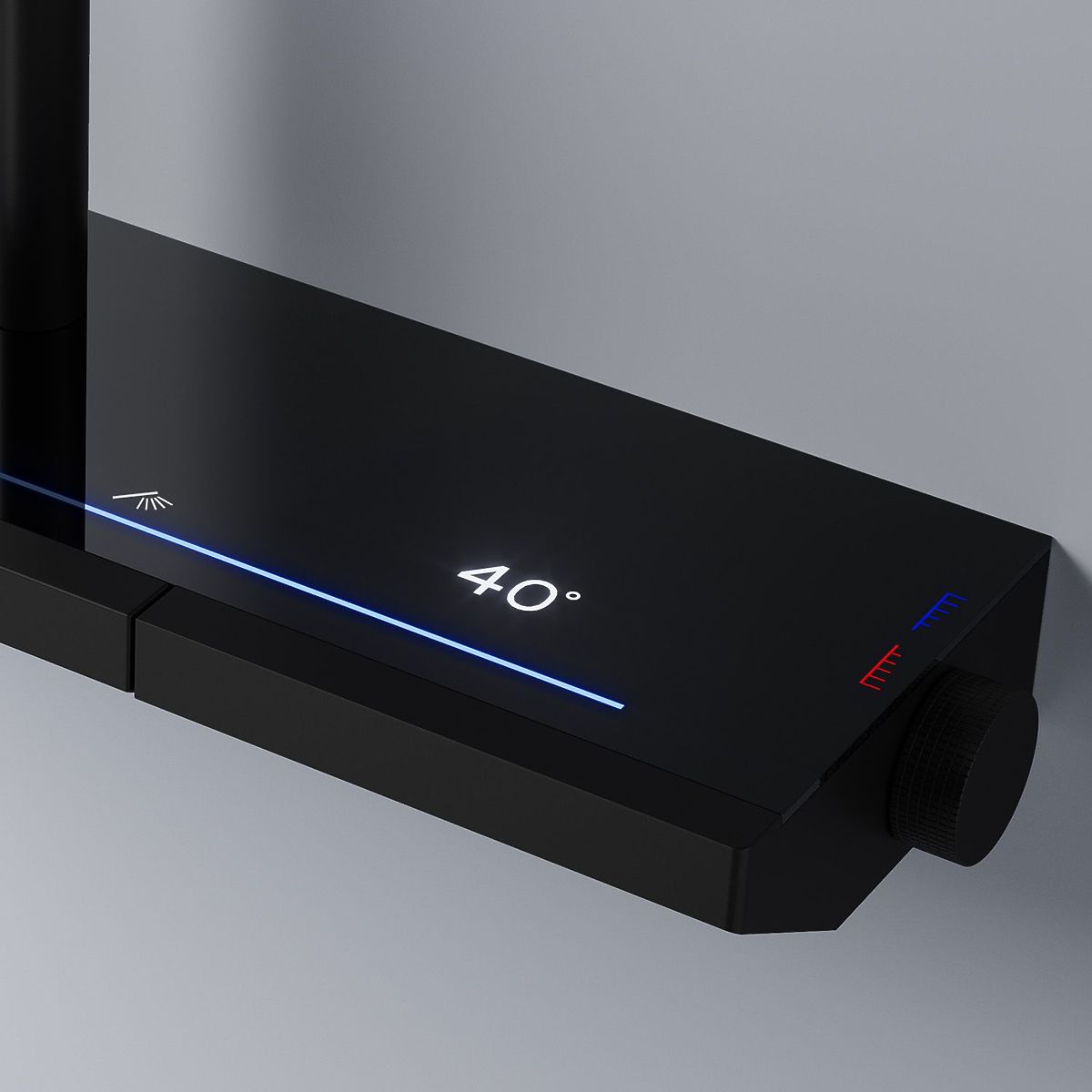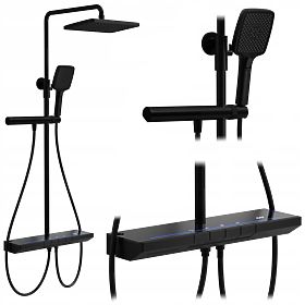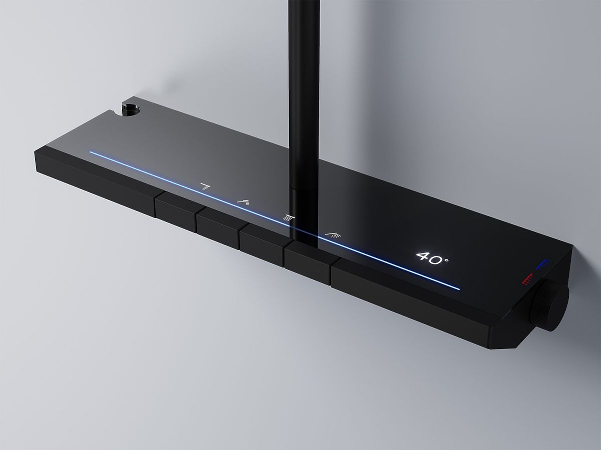 Súprava je vybavená termostatom, intuitívnym ovládacím panelom s podsvietenými tlačidlami a moderným LED displejom, ktorý informuje o teplote vody – bez potreby pripojenia k elektrine.