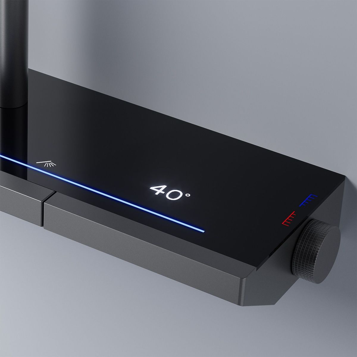 Sada je vybavená termostatom, intuitívnym ovládacím panelom s podsvietenými tlačidlami a moderným LED displejom, ktorý informuje o teplote vody – bez nutnosti pripojenia k elektrickej sieti.