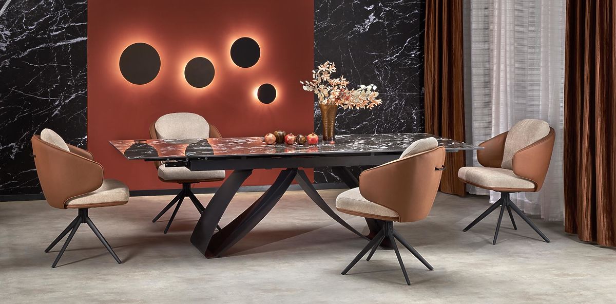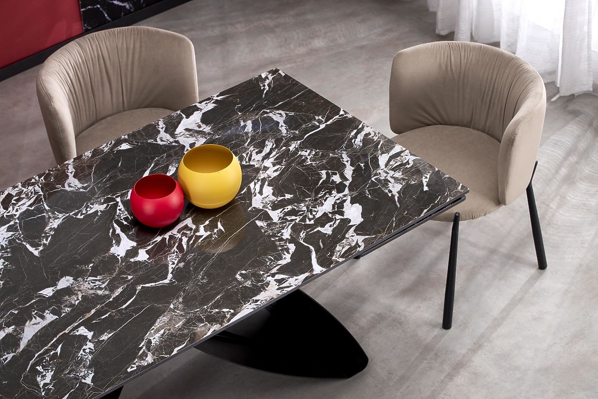 Lukahome.sk » Jedáleň a kuchyne / Jedálenský stoly / HILARIO rozkladací stôl, doska - čierny mramor, nohy - čierne (3p=1ks)