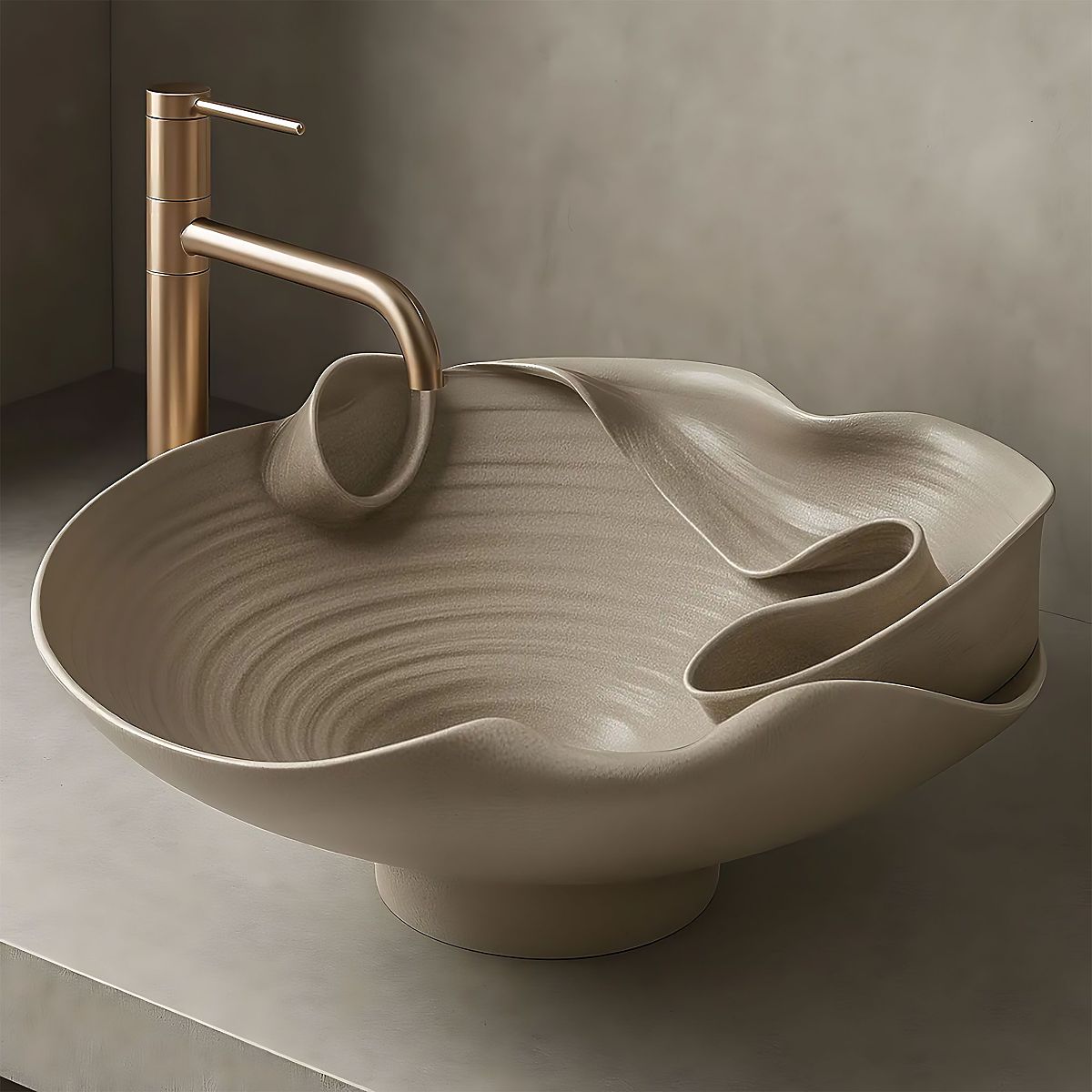 Predstavované umývadlo je novinkou v ponuke značky Rea – Kúpeľňa s Predstavivosťou, navrhnuté pre osoby hľadajúce výnimočné tvary a autentické remeslo. Patrí do kolekcie Hand Made Art – série, v ktorej je každý kus ručne vyrábaný s plnou starostlivosťou o detail. Absencia sériovej výroby zaisťuje, že každé umývadlo sa jemne líši tvarom a textúrou, zachovávajúc unikátny charakter. Tento model je odvážnou formou inšpirovanou pohybom a napätím materiálu. Špirálové zlomy pripomínajú prirodzené deformácie skaly, vlnu alebo zvinutý keramický plát. Výrazný, takmer sochársky tvar činí z umývadla centrálny bod kúpeľne – nielen funkčný, ale aj umelecký. Surová textúra, šedo-béžová farba a matný povrch tvoria harmonický celok s modernými materiálmi: betónom, oceľou, kameňom a sklom. Je to ponuka pre tých, ktorí očakávajú viac – originalitu, kvalitu a formu, ktorá nezostáva ľahostajná.
