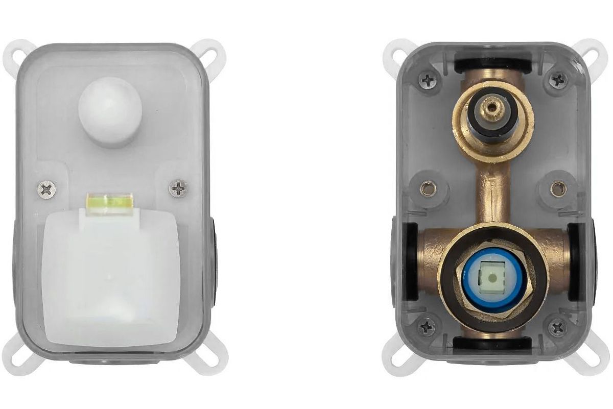 Ďalšou výhodou sady je systém Box, ktorý umožňuje rýchlu a pohodlnú montáž podomietkovej batérie. Vyrobený z plastu a mosadzných prvkov, zabezpečuje spoľahlivosť a dlhú životnosť. Box je vybavený krycou časťou, ktorá chráni vnútorné prvky počas montáže, a vstavaná vodováha umožňuje presné nastavenie. Systém tiež uľahčuje prístup k vnútorným komponentom po inštalácii, čo robí údržbu jednoduchou a bezproblémovou.