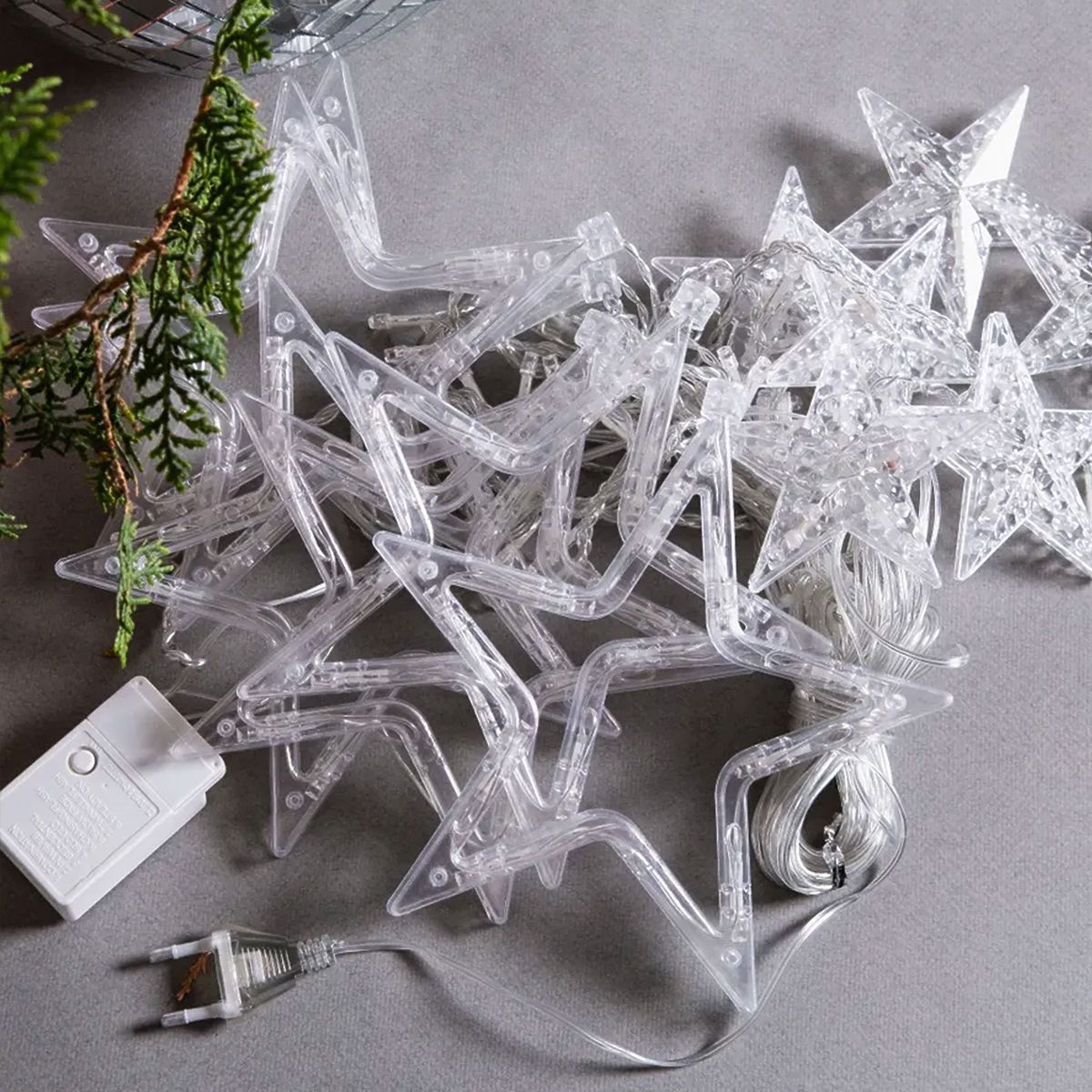 Sada svetiel sa skladá zo 6 závesných LED hviezd o veľkosti 19 × 19 cm a 6 hviezdičiek o rozmere 9 × 9 cm. Dĺžka girlandy je 3000 cm.