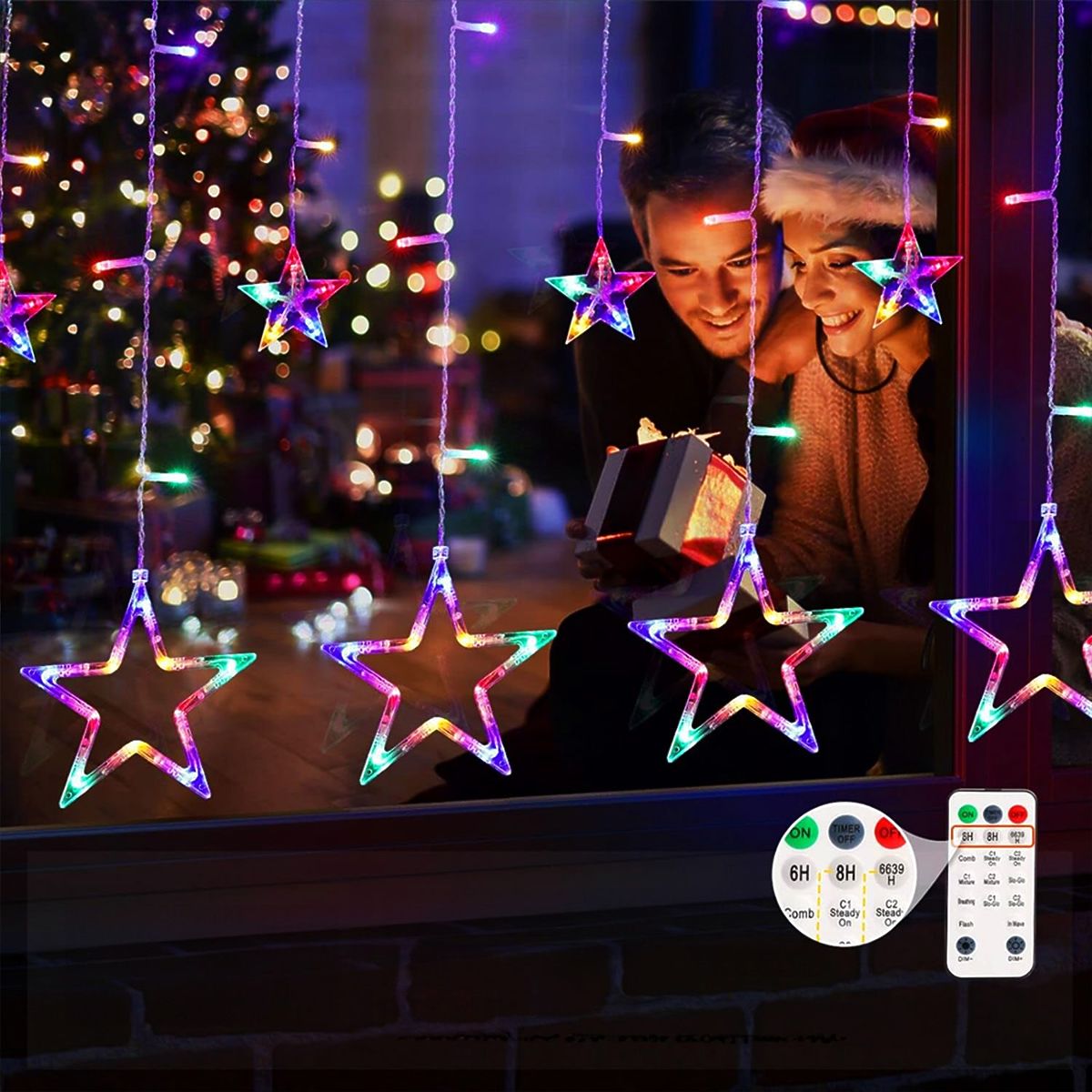 Súčasťou sady je diaľkové ovládanie, ktoré umožňuje zapnutie a vypnutie, rozjasnenie alebo stlmenie, rovnako ako režimy blikania/svietenia celého závesu.