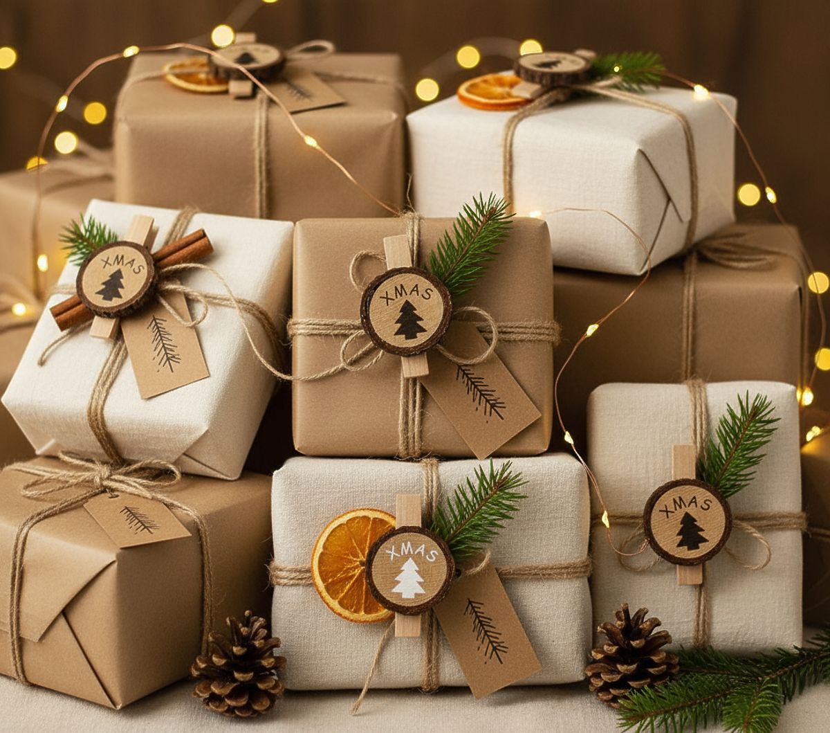 Ich použitie je veľmi široké – uplatnia sa ako pri balení darčekov, kde krásne spájajú visačky a stuhy, tak v adventnom kalendári na pripínanie malých balíčkov alebo čísel dní. Možno ich tiež využiť ako drobnú dekoráciu stola, napríklad k servítkam alebo menovkám hostí, a tiež ich zakomponovať do stromčeka, vencov či girland. Vďaka tomu jeden produkt umožňuje vytvoriť mnoho jedinečných aranžmánov, ktoré prinesú do domu čarovnú atmosféru.