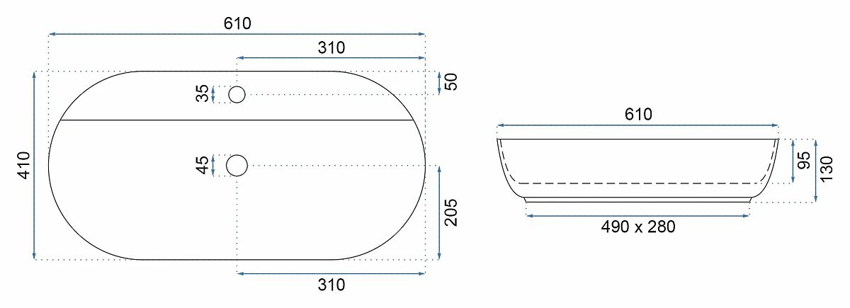 Umyvadlo Rea Aura v zaujímavom, eliptickom tvare dokonale doplní každý moderný interiér. Je prispôsobené na montáž na dosku alebo skrinku. Umyvadlo nie je úplne zakryté, má výrez vzadu pri montážnom otvore pre batériu.