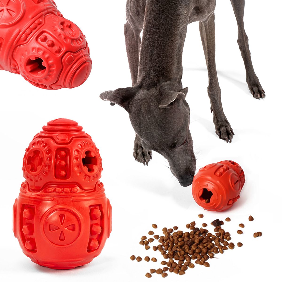 Fascinujúca a interaktívna zábava pre psov! Gumová lopta na vkladanie krmiva pre psov je ideálnym riešením pre majiteľov zvierat, ktorí hľadajú inovatívne spôsoby zábavy a stimulácie svojich miláčikov. Lopty poskytujú hodiny zábavy a zároveň podporujú zdravé stravovacie návyky vďaka pomalému žuvaniu. Stimulujú prirodzené inštinkty hľadania potravy.