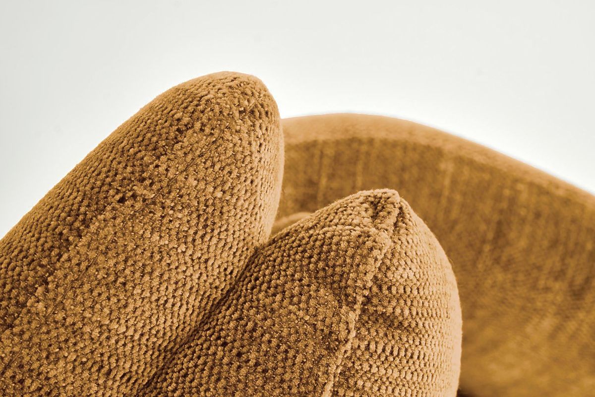 Stolička s funkciou otáčania a horčicovou farbou. .. viac