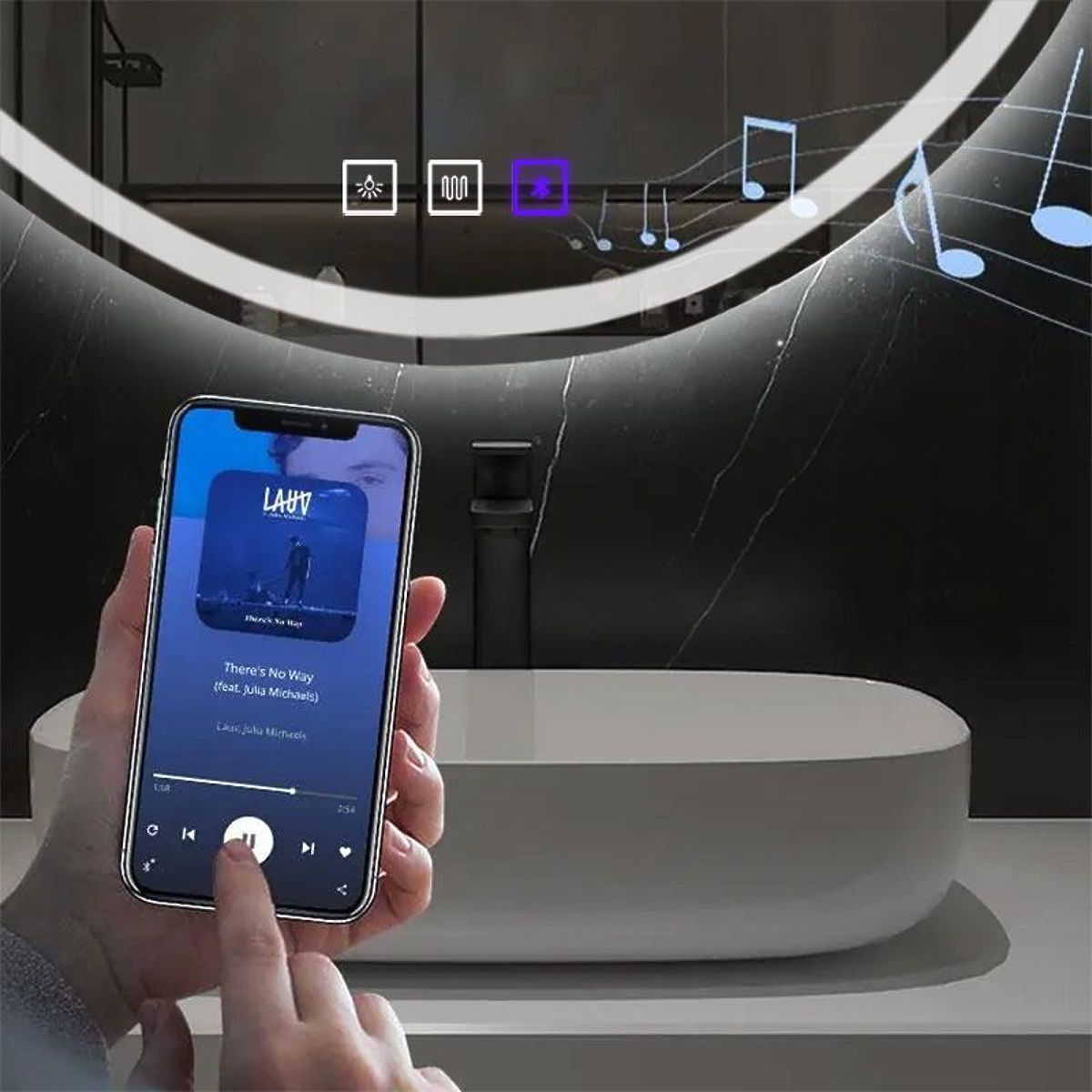 Zrkadlo navyše disponuje funkciou Bluetooth a vstavanými reproduktormi. Stačí sa pripojiť k zrkadlu pomocou smartfónu alebo tabletu a užívať si svoje obľúbené skladby alebo podcasty.