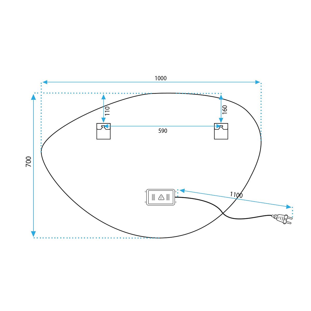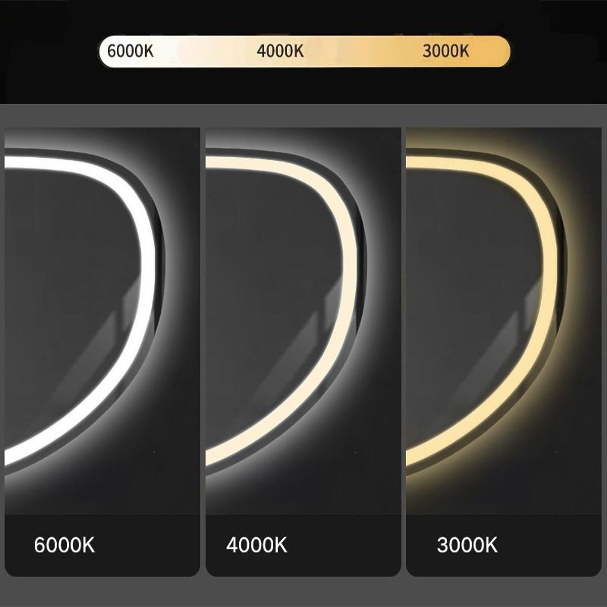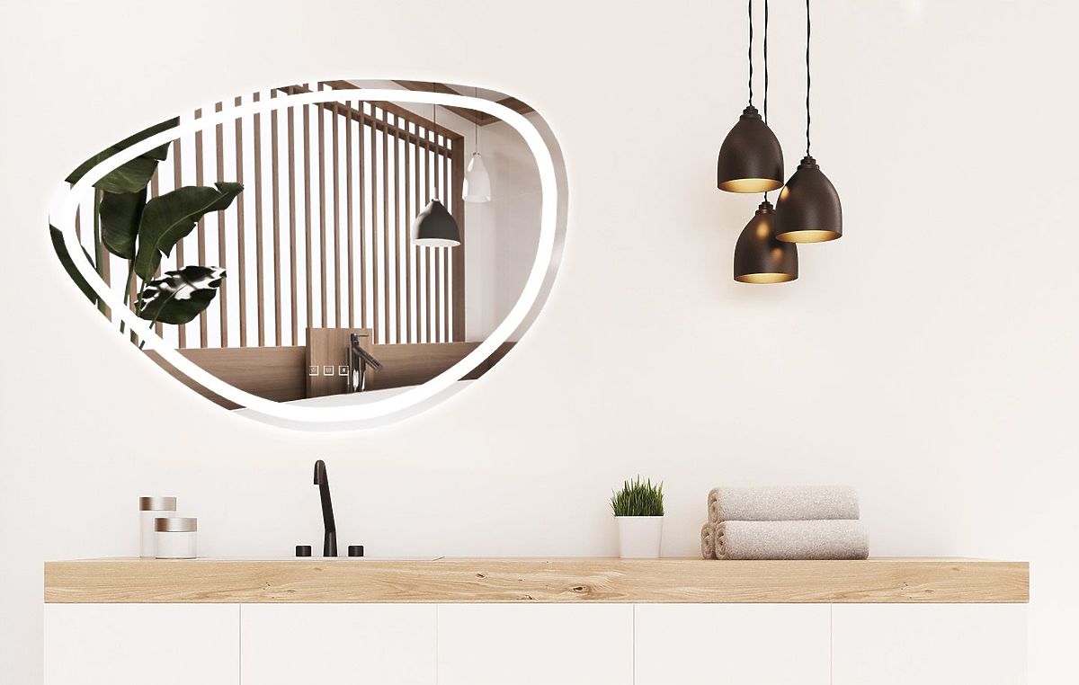 Asymetrické zrkadlo s LED podsvietením je ideálnou voľbou pre tých, ktorí si cenia pohodlie pri používaní a moderný dizajn. Zrkadlo je vyrobené z najkvalitnejších materiálov, skvele sa prezentuje a je veľmi odolné. Ponúka tri dotykovo meniteľné farby LED svetla – teplú, neutrálnu a studenú, a funkciu ohrevu, ktorá zabraňuje zahmlievaniu povrchu. Napájací kábel v bielej farbe má dĺžku 110 cm.