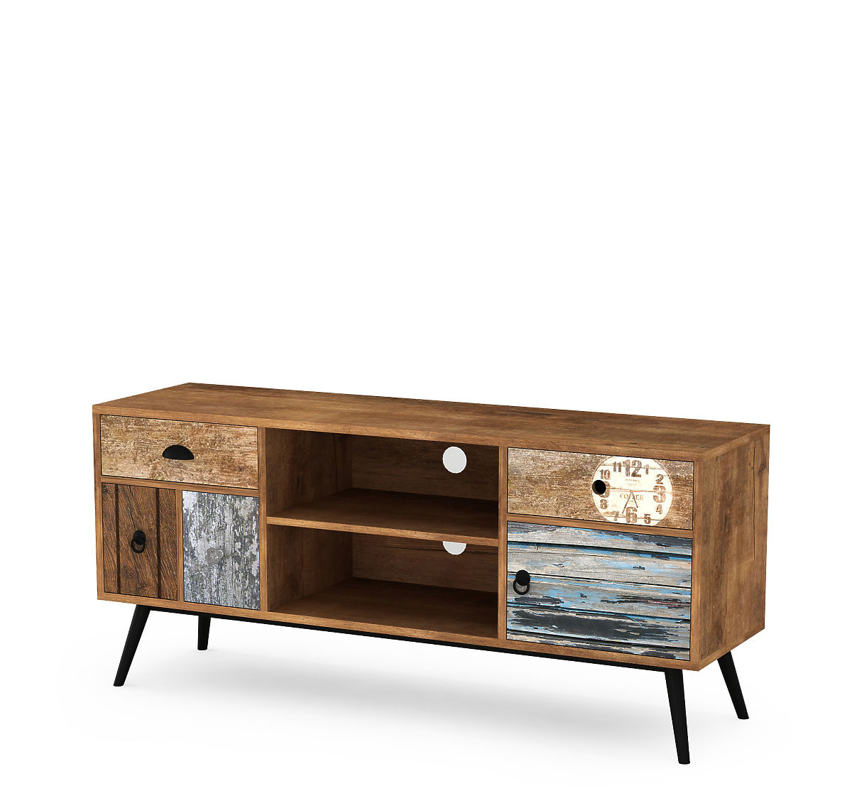 Viacfarebný TV stolík z laminovanej dosky a ocele. .. viac