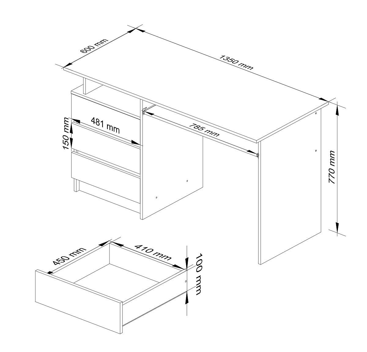 Písací stôl z laminovanej dosky 16 mm odolnej proti oderu.