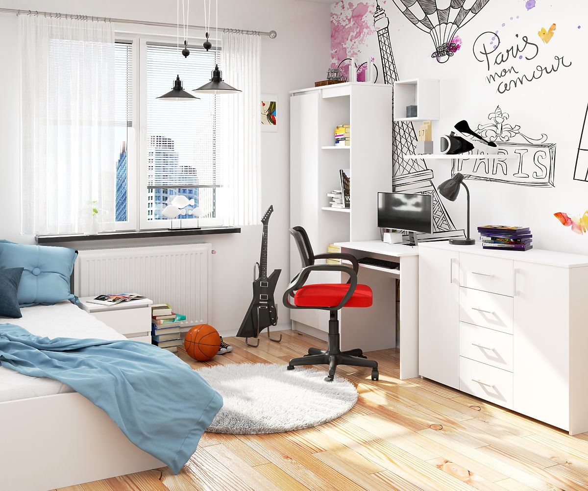 Malý biely voľne stojaci písací stôl STAR je určený predovšetkým do detských a študentských izieb.