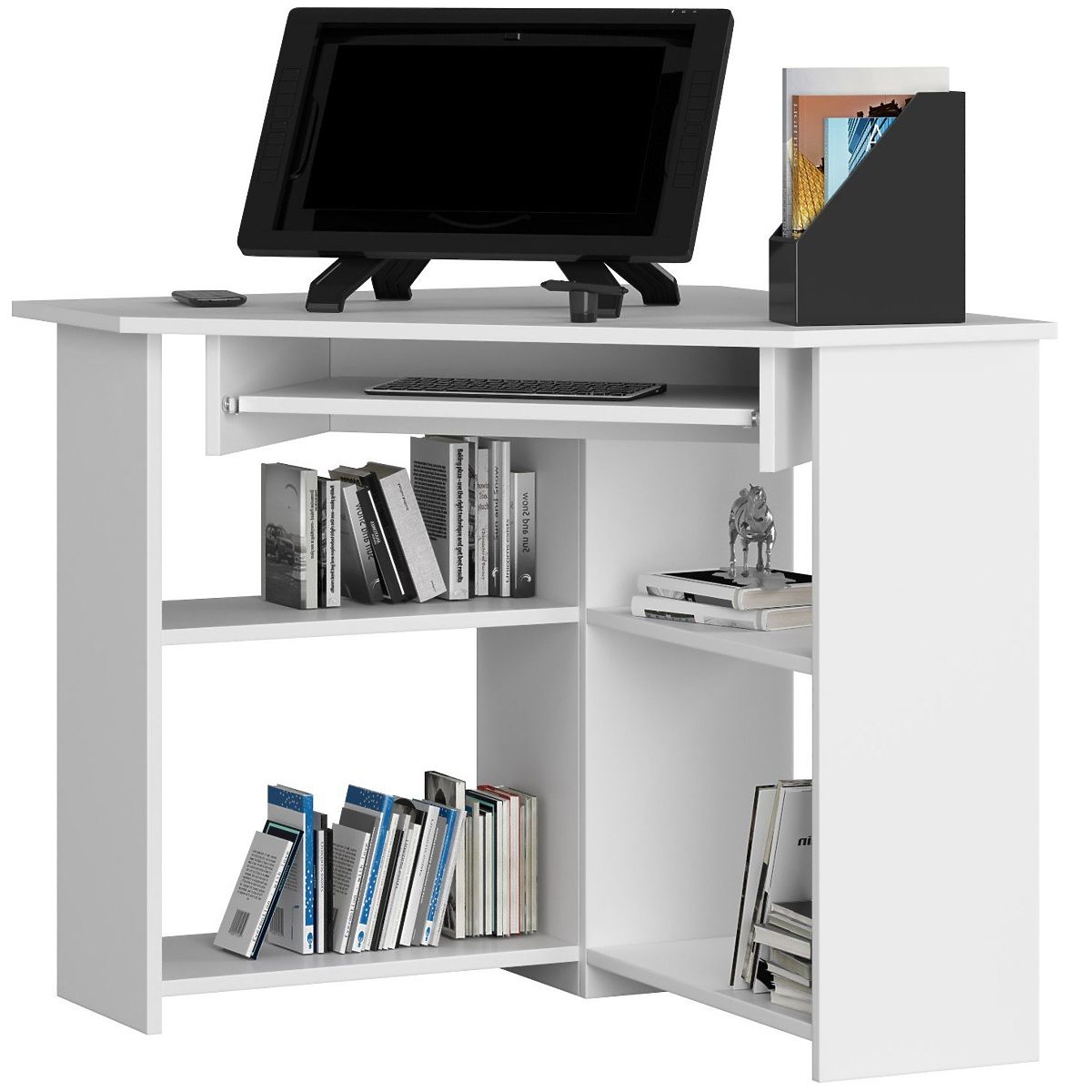 Rohový písací stôl z bielej laminovanej dosky s ABS hranami. .. viac