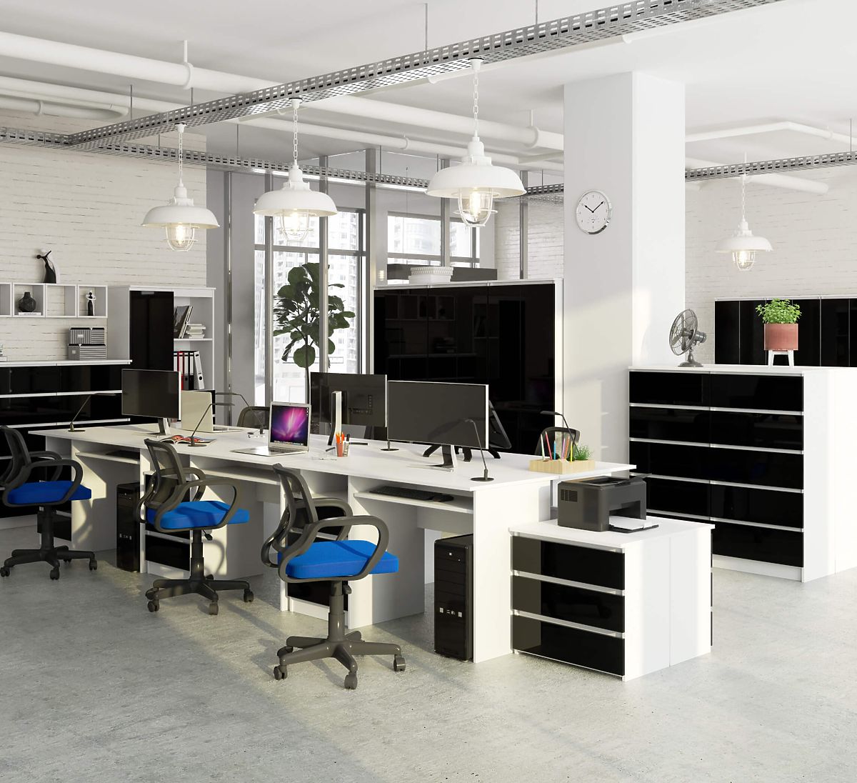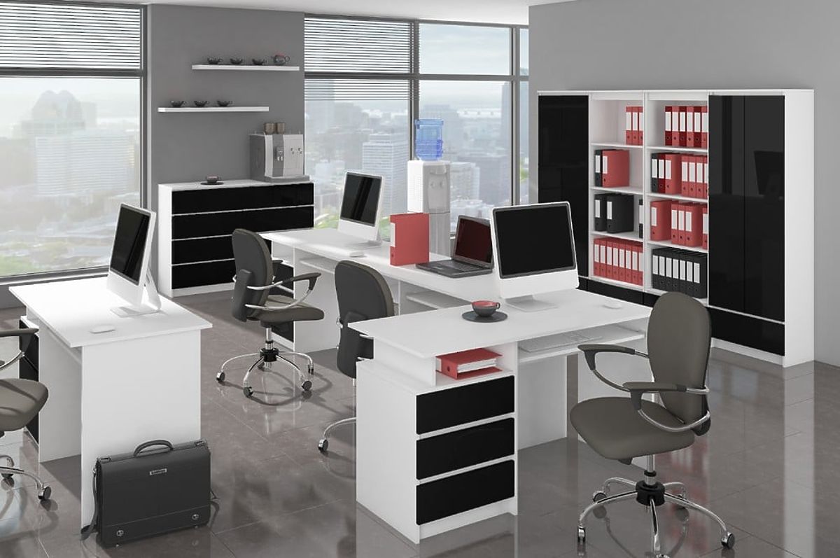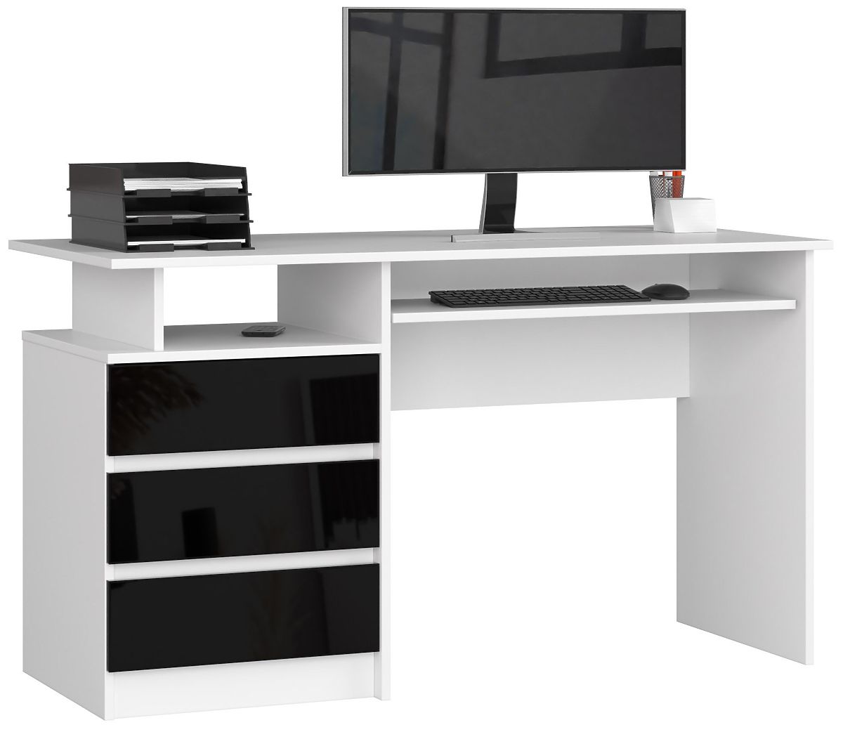 Perfektný písací stôl pre prácu a zábavu by mal byť pohodlný, pekný a funkčný. Taký je aj stôl CLP z ponuky internetového obchodu s nábytkom Akord. Moderný vzhľad mu dodáva nielen efektná konštrukcia, ale aj pútavá kombinácia čiernej a bielej. Vďaka trom priestranným zásuvkám, priehradke na drobnosti a výsuvnej zásuvke na klávesnicu je tento model mimoriadne praktický. Medzi jeho prednosti patrí aj to, že je to voľne stojaci nábytok - nie je potrebné ho umiestňovať k stene, pretože jeho zadná strana je esteticky dokončená.