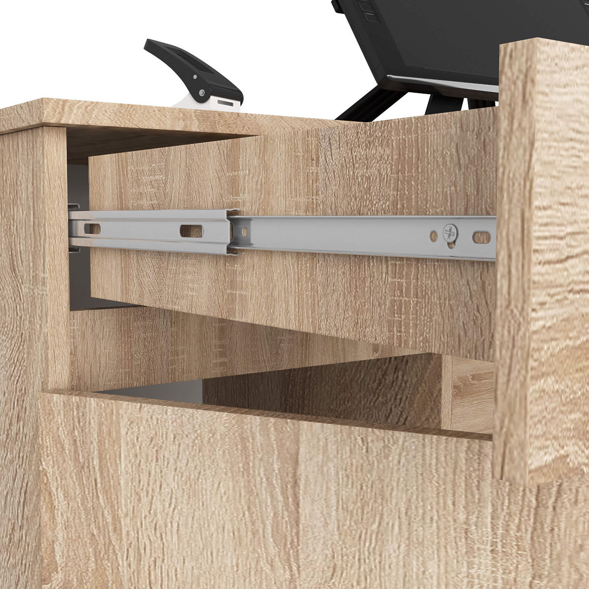 - Zásuvky a polička na klávesnicu sa pohybujú na kovových guľôčkových pojazdoch