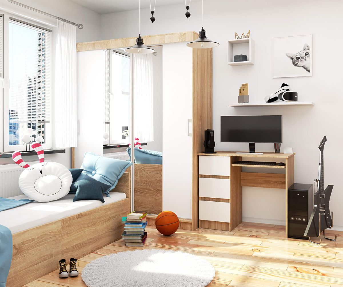 Malý a elegantný počítačový stôl A-6 v farbe duba sonoma je ideálnou voľbou pre mládež a milovníkov moderných interiérov. Pôsobí elegantne a zodpovedá súčasným trendom. Nábytok, ktorý sa dokáže prispôsobiť prakticky každej, aj tej najmenšej miestnosti, je zároveň efektívny pri práci. Doska stola o rozmeroch 90 cm x 50 cm poskytne dostatok priestoru pre školské potreby, učebnice a notebook alebo počítač.