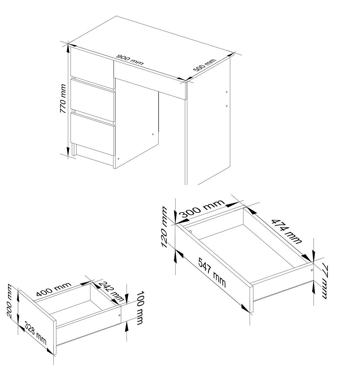 Aké počítačové stoly sú najčastejšie kupované? Predovšetkým funkčné, pevné a estetické. Presne taký je model z našej ponuky: počítačový stôl A-7 90 cm ĽAVÝ s bielym korpusom a čelami zásuviek v farbe sonoma. Nábytok uľahčuje učenie a prácu pred obrazovkou počítača, zabezpečujúc maximálne pohodlie. Skvele sa hodí do obývačky, detskej izby a kancelárie.