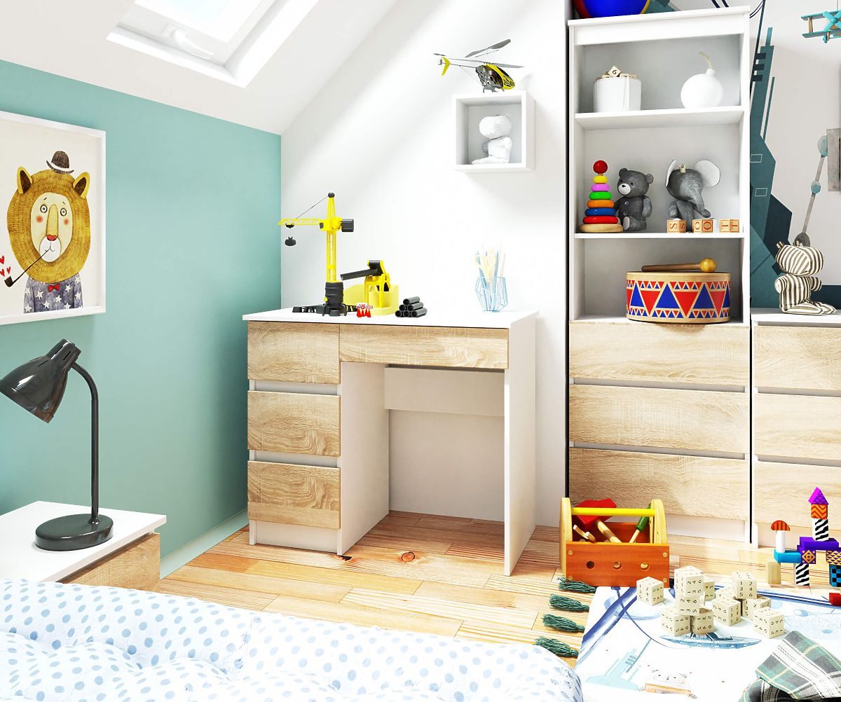 Písací stôl A-7 s bielym korpusom a zásuvkami v farbe sonoma. .. viac