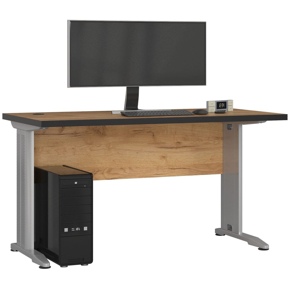 Samostatne stojaci stôl BM-135 v farbe dub craft je ideálnym riešením pre počítačové pracovisko v každom dome alebo kancelárii. Nábytok je vyrobený z laminovanej dosky o hrúbke 32 milimetrov, ktorá je odolná a odolná proti oderu. Viditeľné hrany stola sú potiahnuté ABS hranou, ktorá sa tiež vyznačuje vysokou odolnosťou proti poškodeniu. Matná doska a zadná časť skvele ladia s kovovými nohami. Ak vám záleží na nájdení návrhu s veľkou pracovnou plochou, odporúčame sa oboznámiť s našou ponukou. Zaručujeme najvyššiu kvalitu, funkčnosť, moderný dizajn a priaznivú cenu. K stolu môžete prispôsobiť ďalší kancelársky nábytok dostupný v našom internetovom obchode. Dúfame, že splní očakávania aj tých najnáročnejších zákazníkov. Stôl je ľahko čistiteľný a jeho jednoduchá a zároveň elegantná forma dáva nábytku nadčasový a univerzálny charakter.