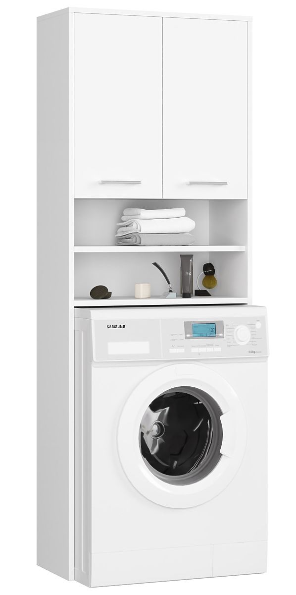 Regál nad práčku s bielou farbou a veľkým úložným priestorom. .. viac
