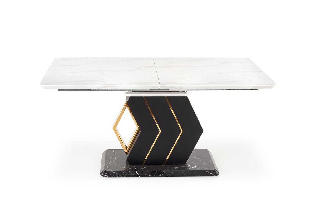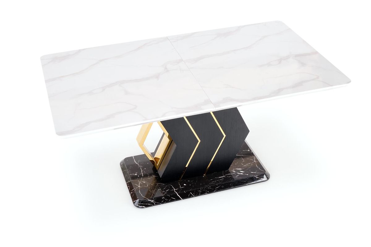Lukahome.sk » Jedáleň a kuchyňa / Jedálenské stoly / VINCENZO rozkladací stôl doska: biely mramor, noha čierna/zlatá (3p=1ks)