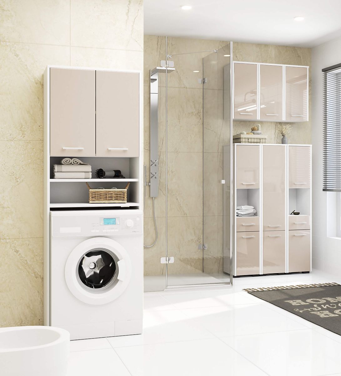 Kúpeľňový regál s cappuccino leskom a striebornými úchytmi. .. viac