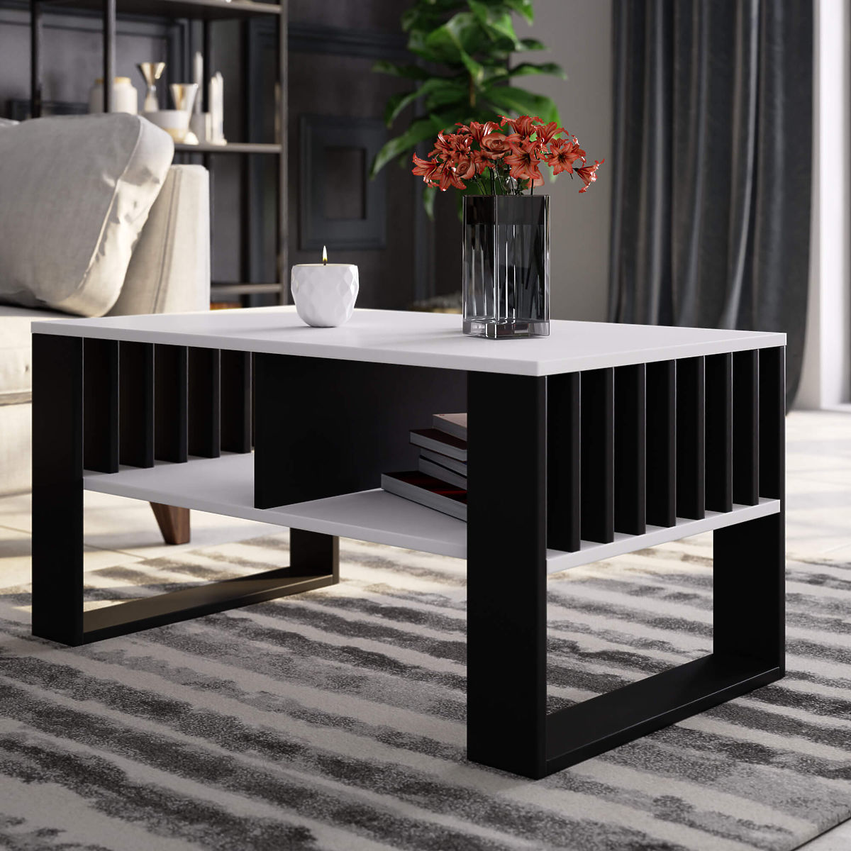 Konferenčný stolík Rockford biely s čiernymi nohami je kombináciou atraktívneho a estetického vzhľadu s funkčnosťou a univerzálnosťou použitia. Vďaka farebnosti sa stolík skvele hodí do moderného aj tradičného interiéru, zároveň vizuálne zväčšuje a presvetľuje miestnosť. Malá veľkosť nábytku zabezpečuje, že stolík splní svoj účel aj v malej izbe v byte. Stolík je nábytok s všestranným využitím. Môže byť použitý nielen na pitie kávy, čaju alebo studených nápojov, prijímanie hostí alebo každodenný odpočinok. Stolík s funkčnou doskou je tiež vhodný na prácu s notebookom, zatiaľ čo široká polička umiestnená dole umožňuje uložiť na ňu počítačové príslušenstvo a pracovné materiály. Konferenčný stolík Rockford biely s čiernymi nohami je vyrobený z laminovanej dosky odolnej proti oderu a vode, vďaka čomu môže byť doska nábytku úspešne čistená aj mokrou cestou. Hrany stolíka sú opatrené odolnými ABS hranami, čo ďalej zvyšuje odolnosť nábytku proti poškodeniu.