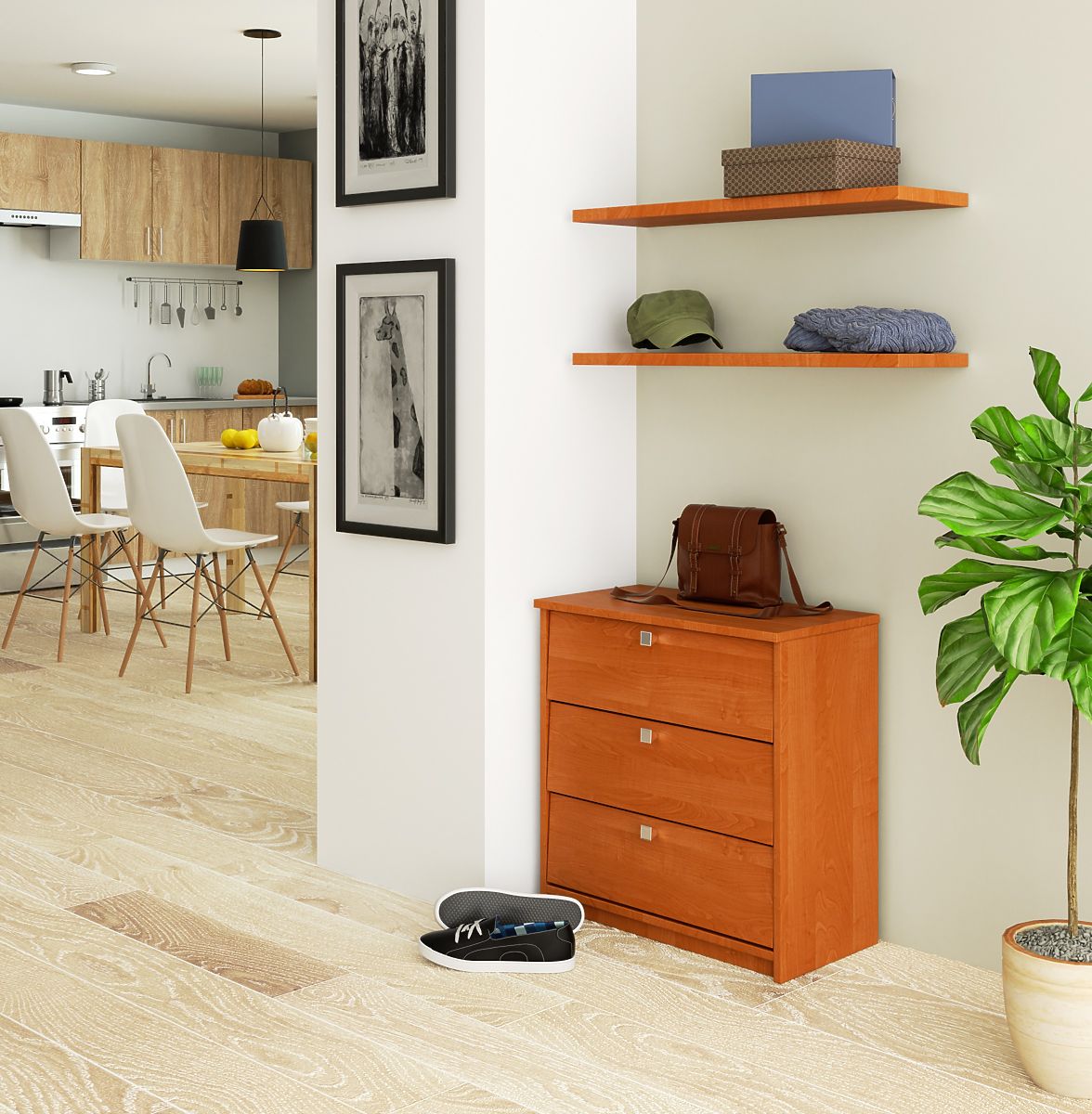 - Botník vyrobený z laminovanej dosky odolnej proti oderu