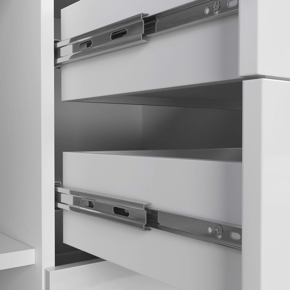 - Zásuvky sa pohybujú na kovových guľôčkových pojazdoch