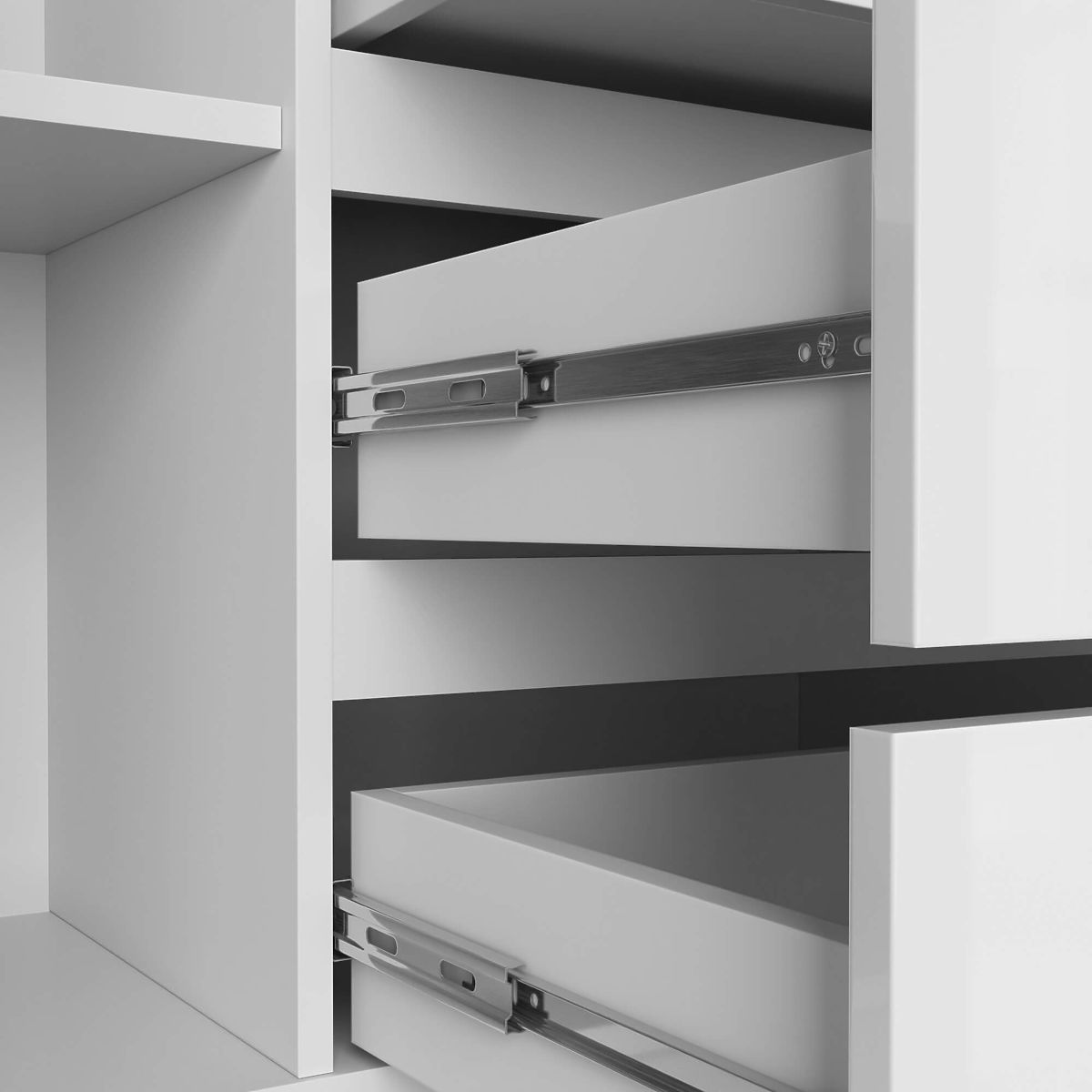 - Zásuvky sa pohybujú na kovových guľôčkových pojazdoch - Hrany sú opatrené ABS hranou zabezpečujúcou vysokú ochranu proti poškodeniu