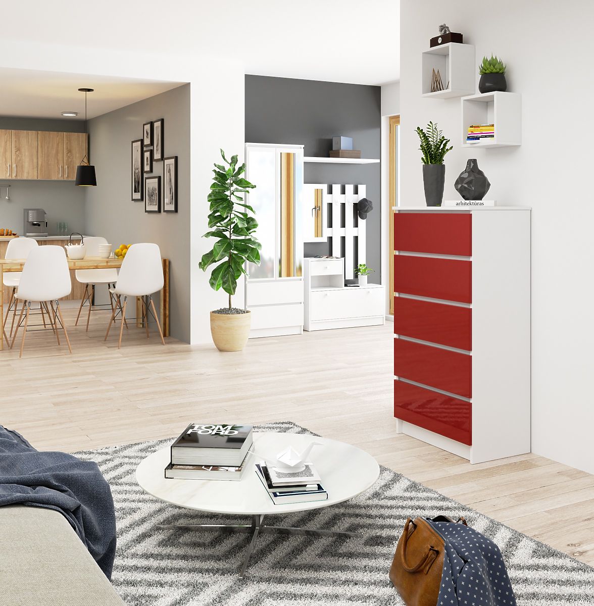 Komoda K60 s piatimi zásuvkami v červenom lesku. .. viac