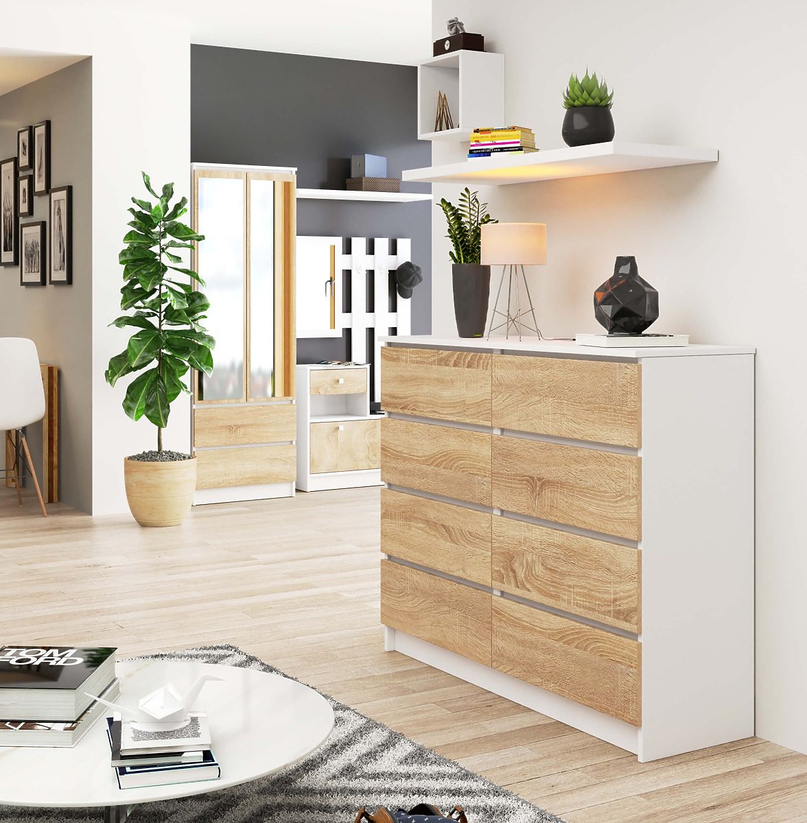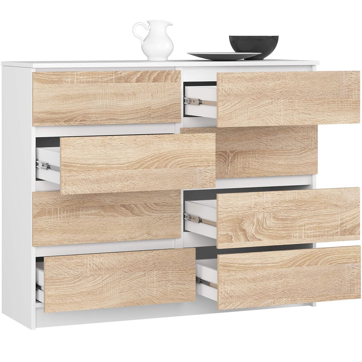 Komoda s 8 zásuvkami z laminovanej dosky, biela/dub Sonoma. .. viac