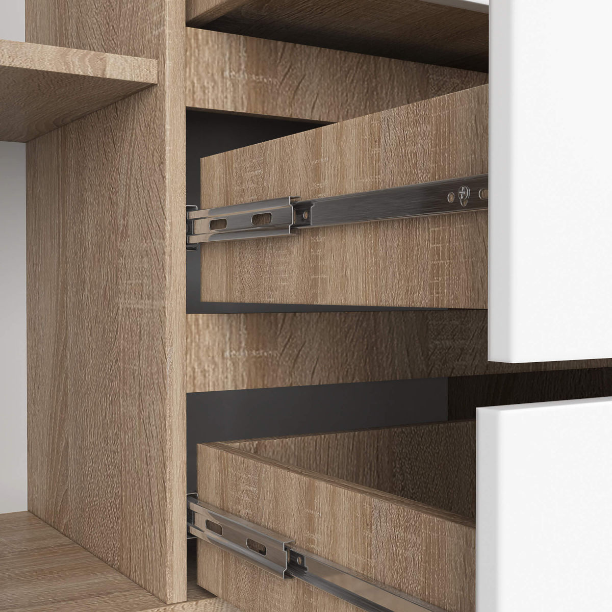 - Zásuvky sa pohybujú na kovových guľôčkových pojazdoch - Hrany olepené ABS hranou zaisťujúcou vysokú ochranu proti poškodeniu