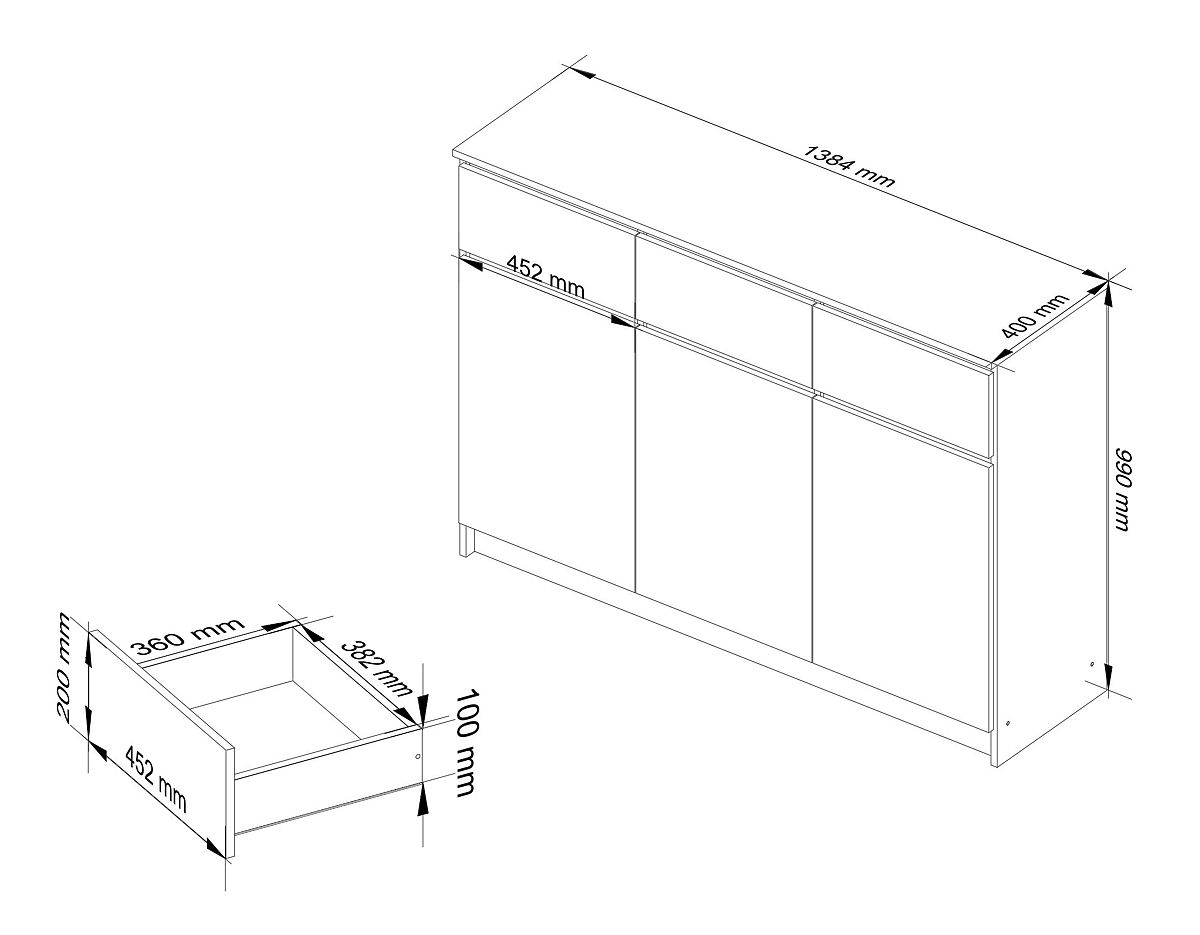 - Komoda vyrobená z vysoko kvalitnej laminovanej dosky 16mm odolnej voči oderu. Dosku dodáva výrobca Kronospan