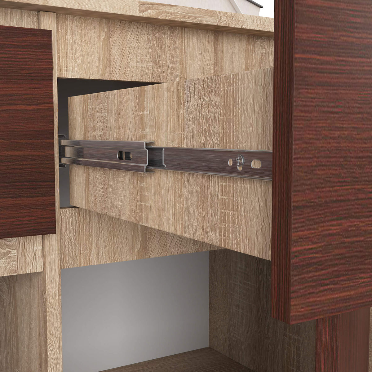 - Zásuvky sa pohybujú na kovových guľôčkových koľajničkách