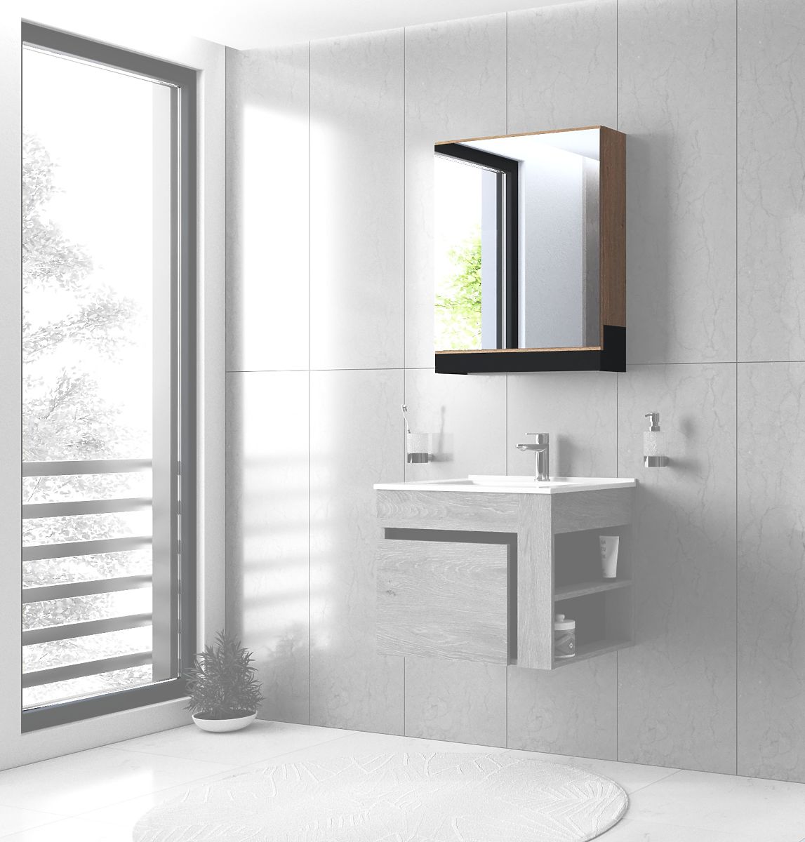 Skrinka pod umývadlo DUESA je ideálnou voľbou pre každú modernú kúpeľňu, kde sa kladie dôraz na funkčnosť, poriadok a prirodzený dizajn. Vďaka svojim kompaktným rozmerom perfektne pasuje pod väčšinu umývadiel so šírkou 60 cm a ponúka praktický úložný priestor pre každodenné potreby. Vnútorné usporiadanie kombinuje zásuvku a otvorené police, ktoré umožňujú prehľadné uloženie kozmetiky, uterákov alebo čistiacich prostriedkov. Skrinka je vyrobená z kvalitného dreva v dekore biely dub, ktoré dodáva kúpeľni príjemný, prírodný vzhľad a zároveň zaisťuje dlhú životnosť aj pri každodennom používaní.