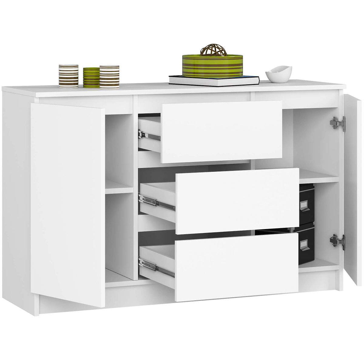 Komoda s tromi zásuvkami a dvomi dverami v bielej farbe. .. viac