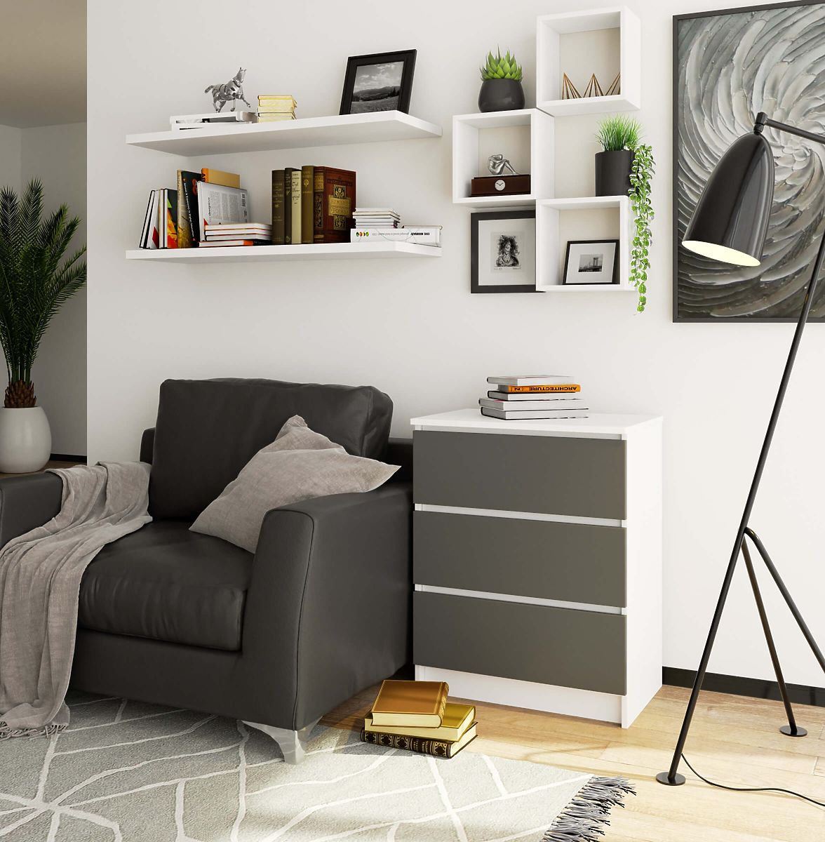 Komoda s tromi zásuvkami v bielej a šedej farbe. .. viac