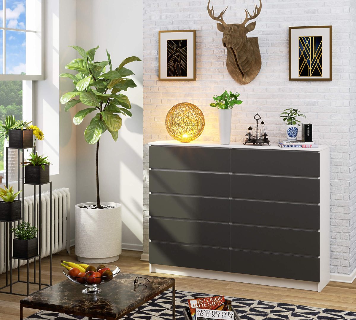 Komoda s 10 zásuvkami a grafitovo šedými čelami. .. viac
