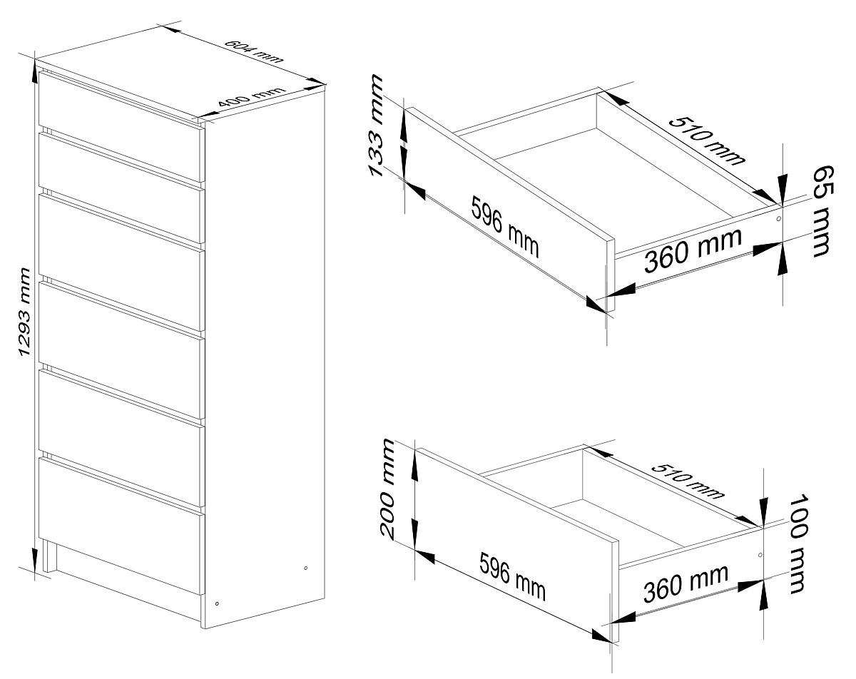 Štýlové priestranné a svetlé obývacie izby tiež potrebujú vhodný nábytok a doplnky. Pre zákazníkov hľadajúcich farebne aj kvalitatívne zladenú komodu do svojich interiérov sme pripravili skvelý produkt úplne vyrobený z laminovanej dosky. Biela komoda sa skvele prezentuje a prispôsobuje sa dizajnu ostatného nábytku. Má 6 praktických zásuviek s hĺbkou až 40 centimetrov, do ktorých možno umiestniť všetky potrebné doplnky. Komoda má výšku 130 centimetrov, čo umožňuje umiestnenie ďalších doplnkov alebo televízneho zariadenia na jej povrch. Odolné steny sú vyrobené z hrubej 1,6 mm dosky, ktorá zabezpečuje zodpovedajúce pevnostné parametre. Hrany komody boli dodatočne chránené olepením, ktoré chráni nábytok pred otlčením alebo inými mechanickými poškodeniami. Skvelá farebnosť a jednoduchý praktický vzhľad nábytku určite umožní jeho zladenie s ďalšími produktmi vo vašom byte. Navyše komoda obsahuje skrinky s vstavanými guľôčkovými pojazdmi, ktoré značne uľahčujú vysúvanie a zatváranie jednotlivých komôr. Predávaný produkt dodávame vo verzii pre vlastnú montáž, prikladáme tiež potrebný návod, ako tento proces vykonať.