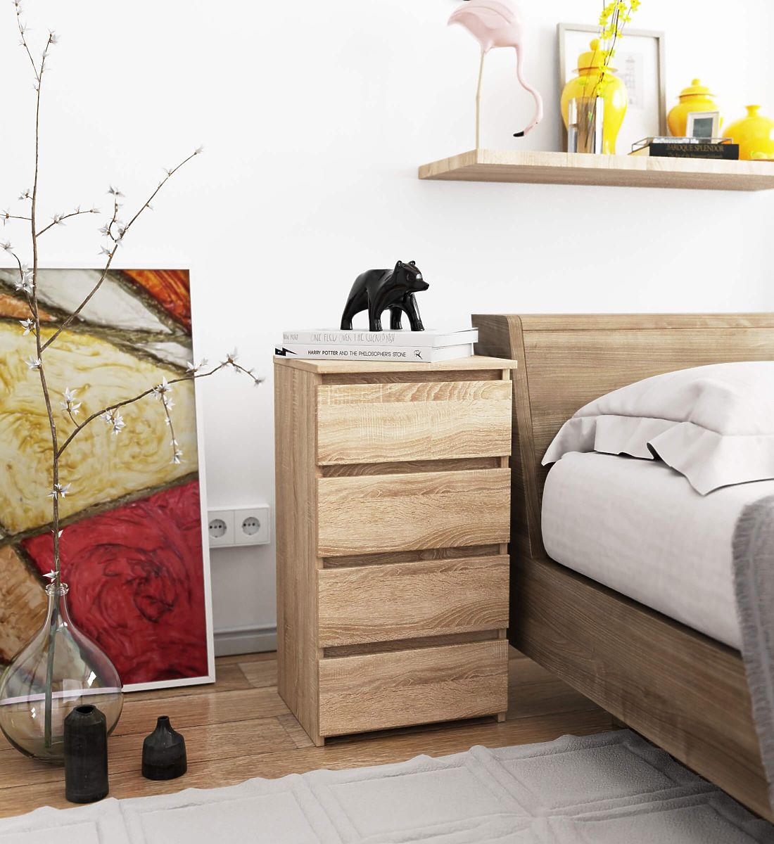Komody sú obľúbeným typom nábytku, ktorý sa umiestňuje vedľa postele. Na jeho doske sa najčastejšie nachádza lampička, zatiaľ čo vo vnútri sú predmety uľahčujúce odpočinok a spánok. Ľudia, ktorí hľadajú elegantnú komodu, by mali venovať pozornosť komode CL4 40 cm v farbe dub sonoma. Bude sa krásne vynímať v každej spálni. Môžete ju tiež umiestniť do detskej izby.