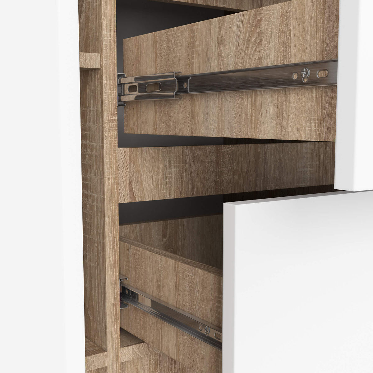 - Zásuvky sa pohybujú na kovových guľôčkových pojazdoch
